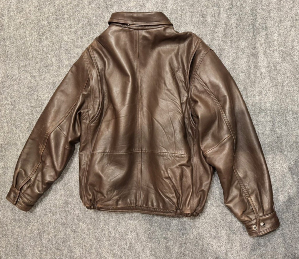 как выглядит Vintage Tommy Hilfiger Genuine Brown Leather Bomber Jacket Mens Lined Size M фото