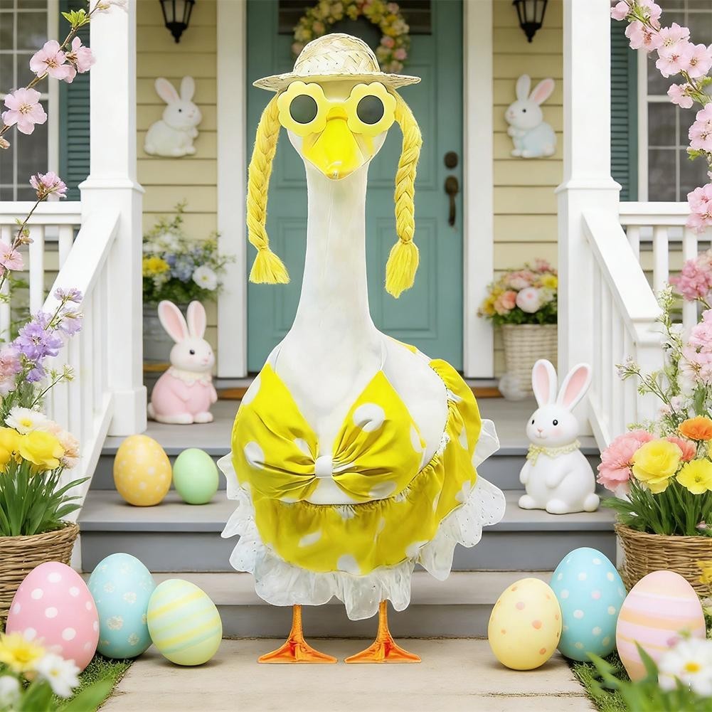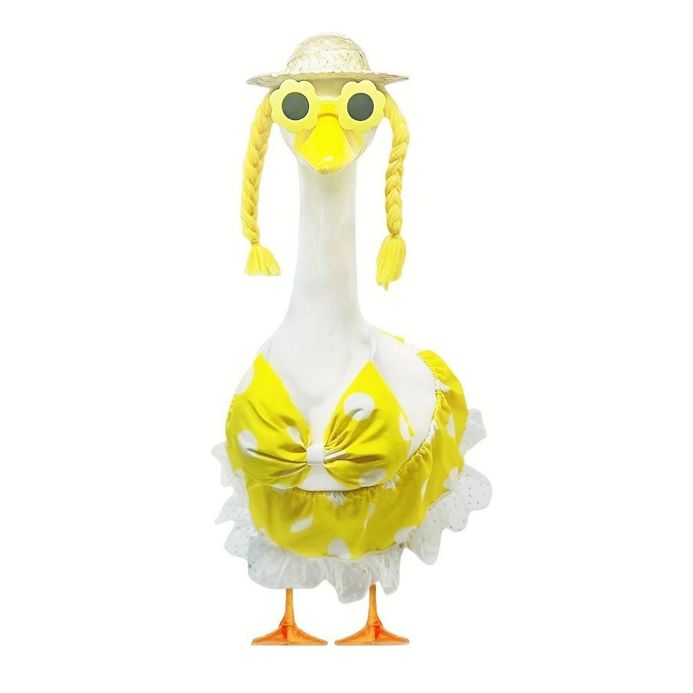 как выглядит Cute Duck Outfit Hat Braids Top Skirt Sunglasses Garden Decor Display H0Z9 фото