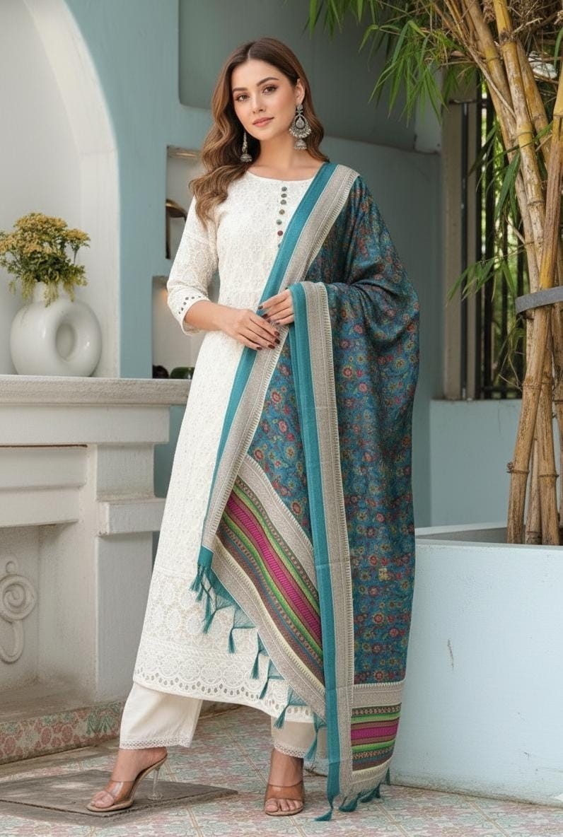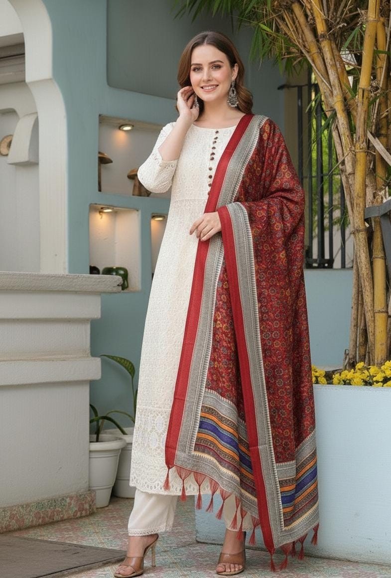 Women s Embroidered Kurta Pant Set with Printed Dupatta Ethnic Indian Suit