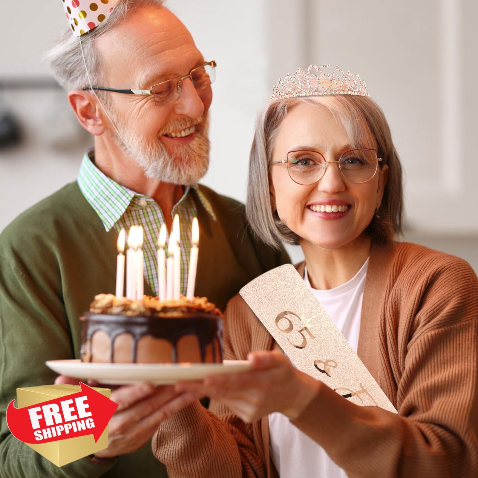 CIEHER 65th Birthday Crown Sash Pearl Pin Set for Women