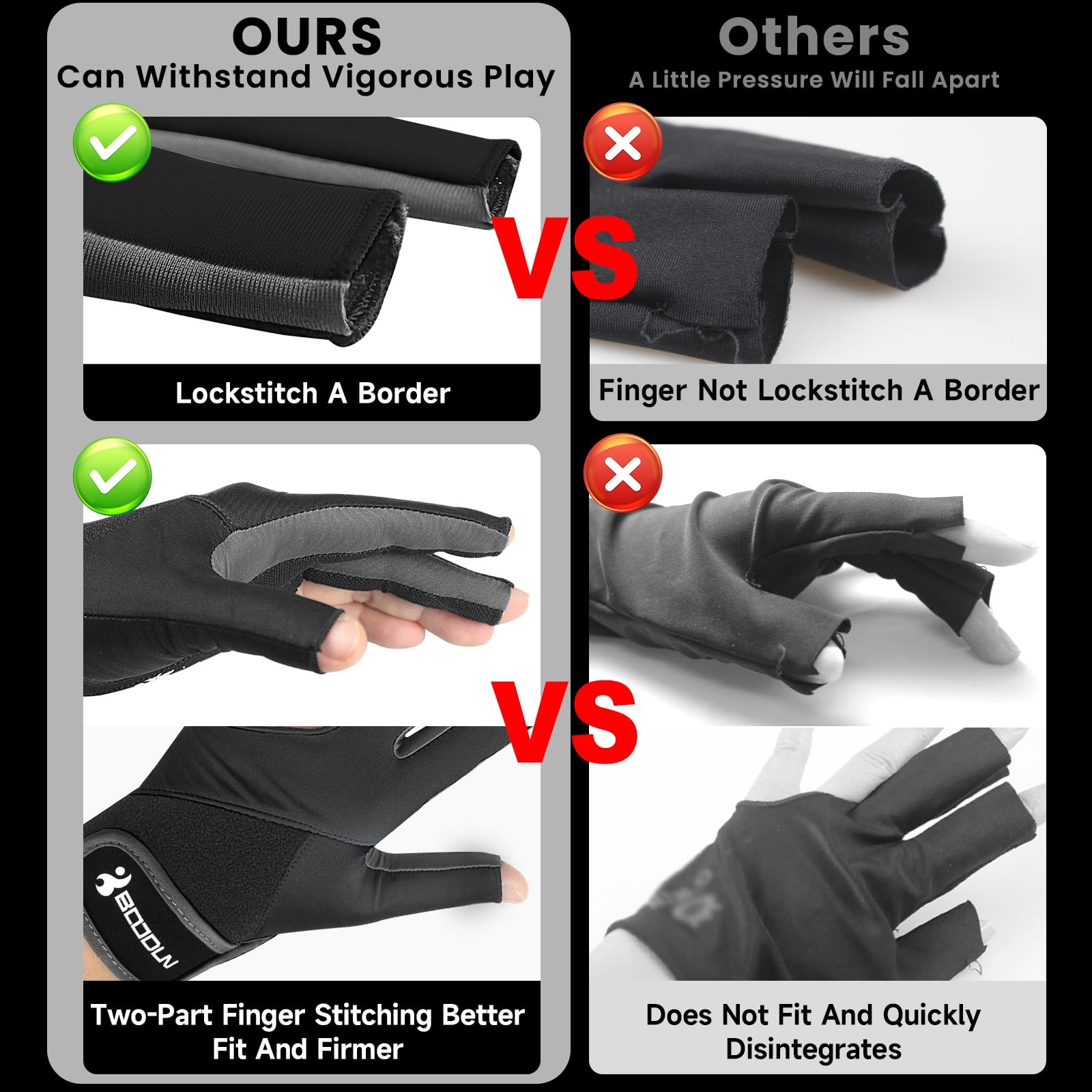 Billiard Pool Gloves for Left Hand 3 Finger, Splicing Process, Snooker Cue Sport