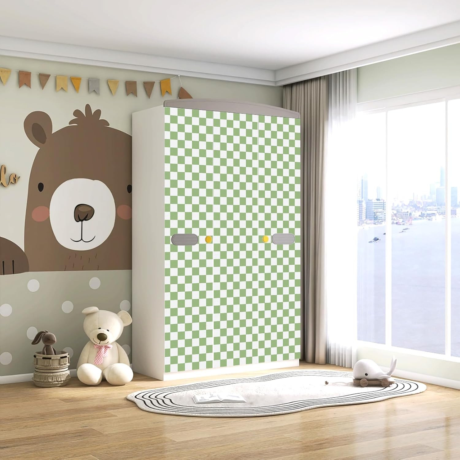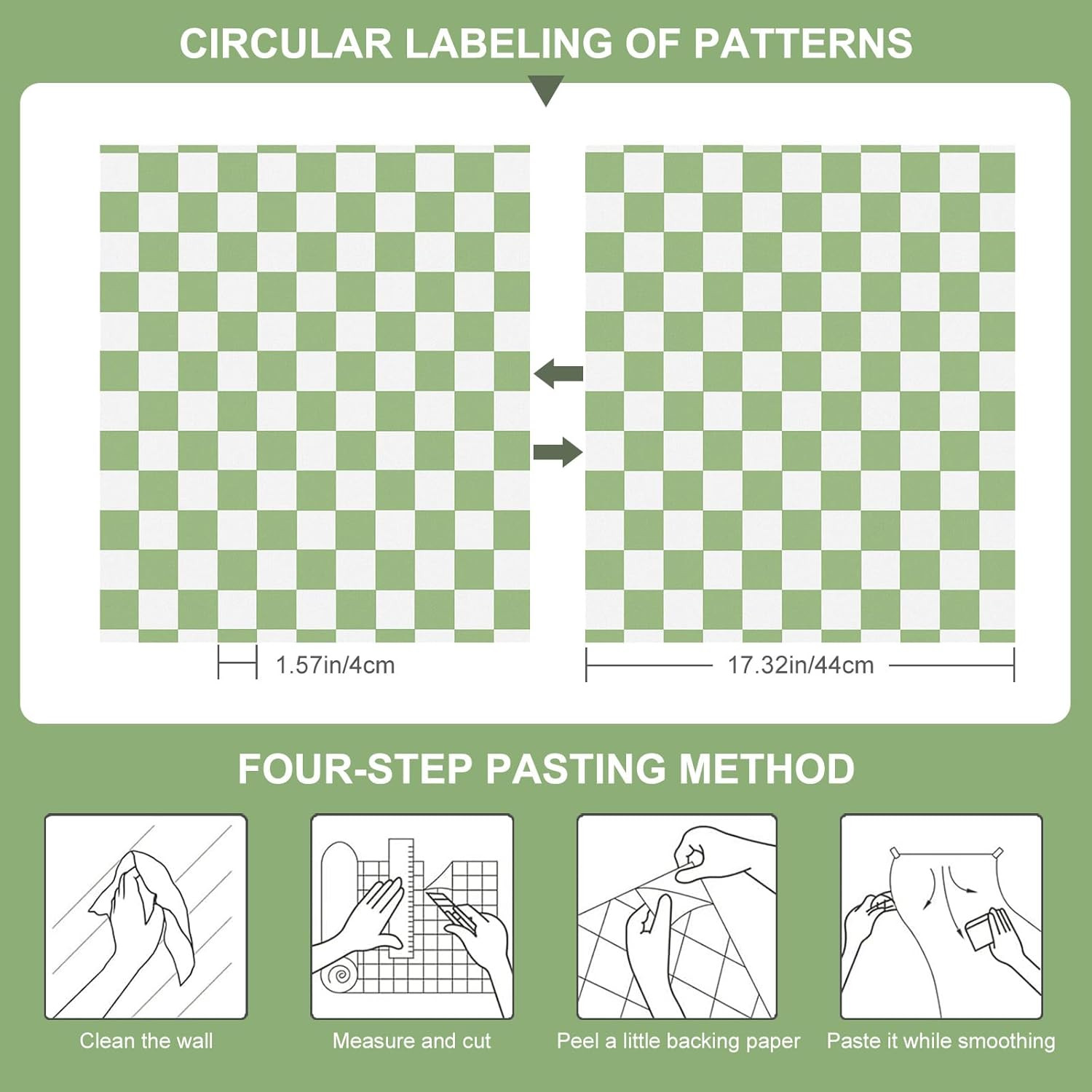 Checkered Peel and Stick Wallpaper Mosaic Wallpaper 17.3''X80'' Green and White