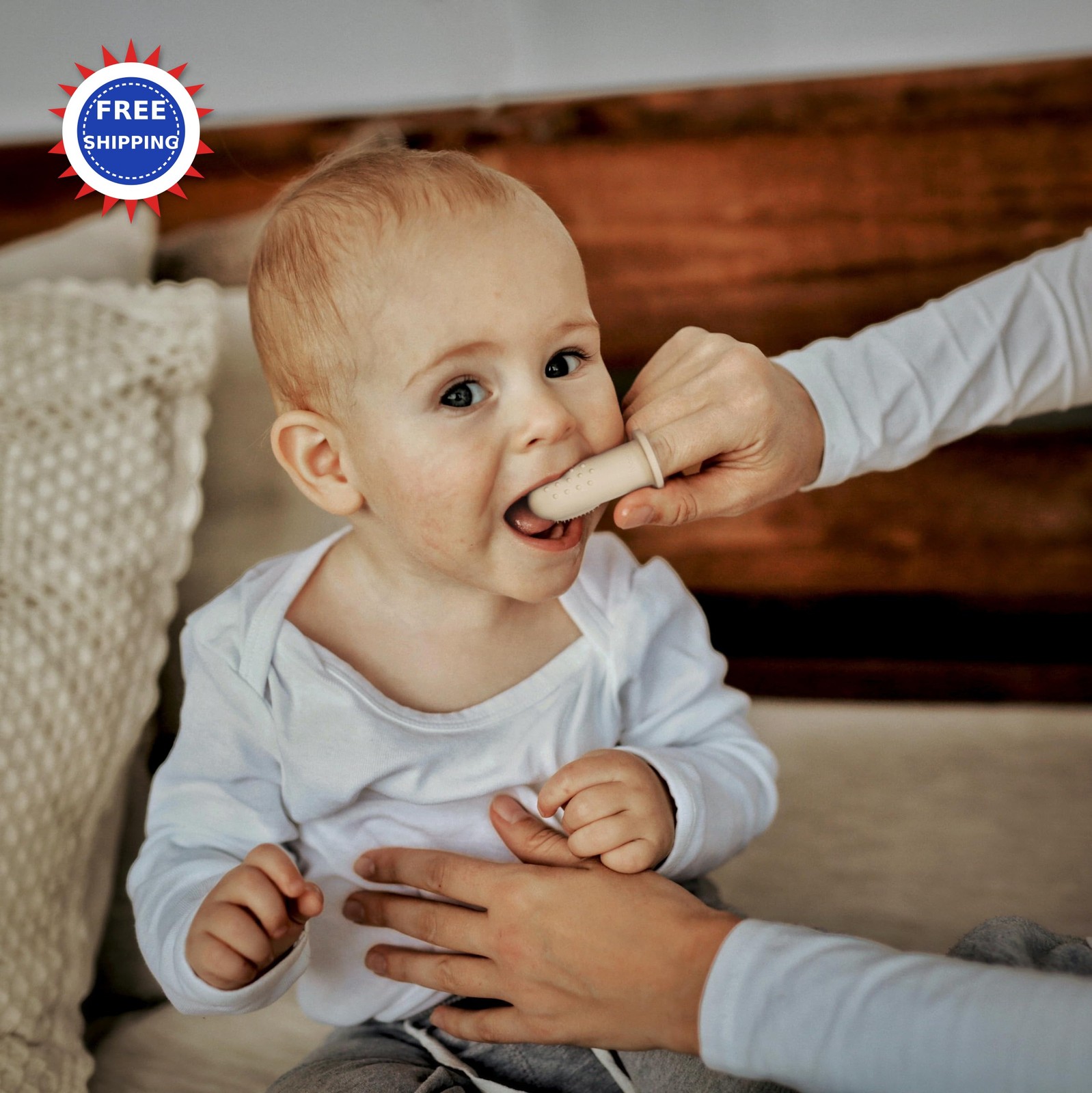 как выглядит Baby Finger Toothbrush Tongue Oral Cleaner Kit 3 Pcs Moonkie Months Blush Pale фото