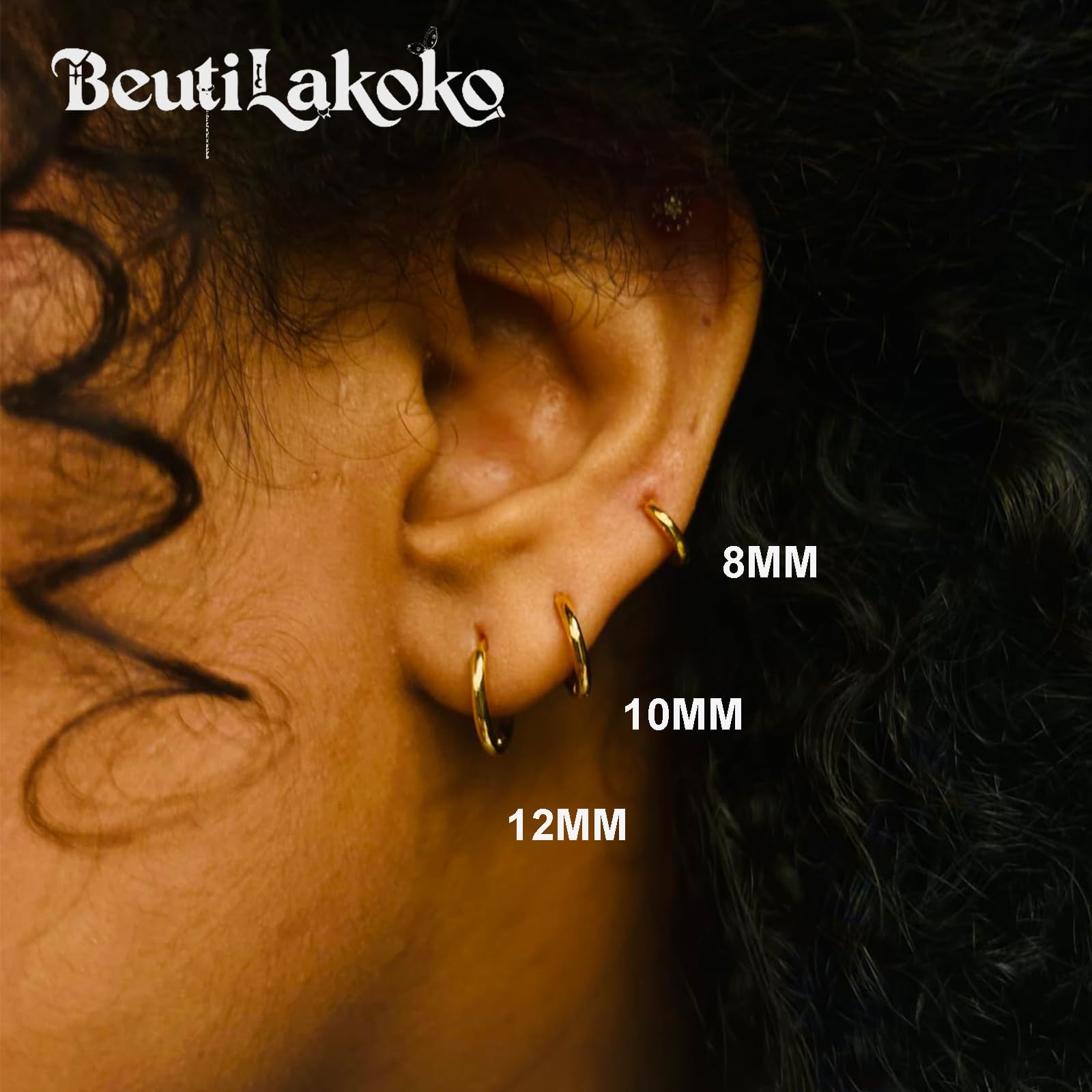 Hypoallergenic Titanium Hoop Earrings for Women Men-8mm 10mm 12mm 8mm, Gold