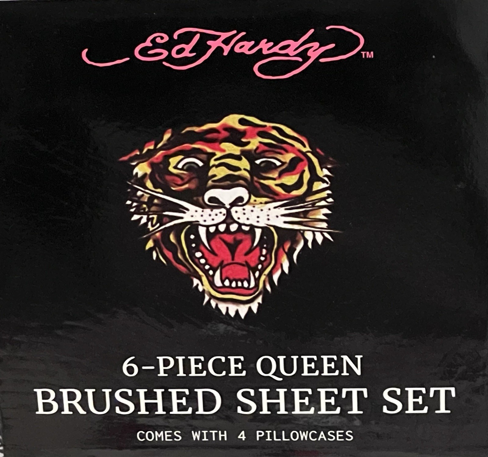 Ed Hardy Queen 6pc Black White Skull Snake Print Brushed Sheet Set NWT