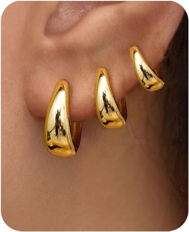 как выглядит 3Pairs Gold Hoop Earrings Set for Women Chunky Gold Silver Earring 14K Gold Fill фото
