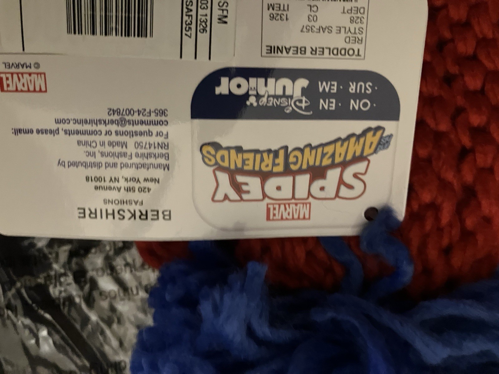 NWT Marvel Spider Man Knit Beanie Size Toddler 2T-5T Blue And Red