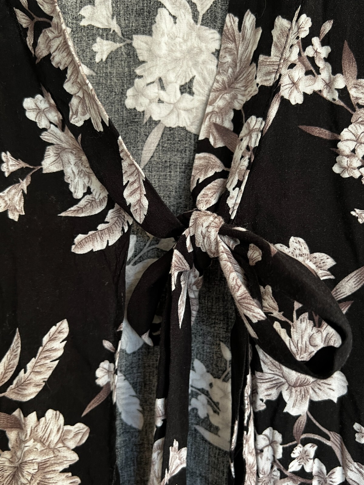 как выглядит SPIRITUAL GANGSTER Maya Black Floral Kimono One Size Tie Front Boho фото