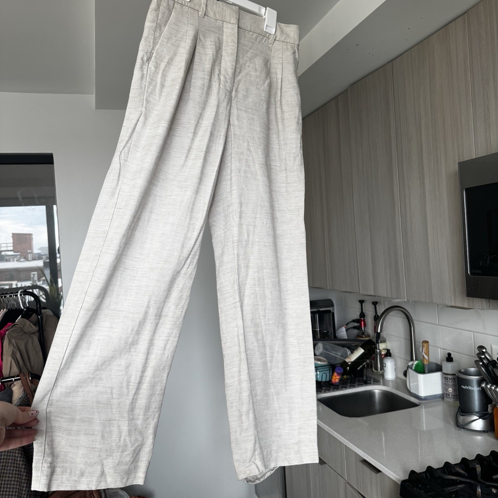 как выглядит Aritzia Wilfred Pants Beige The Effortless Pant Gold Camel Crepette Size 4 Short фото