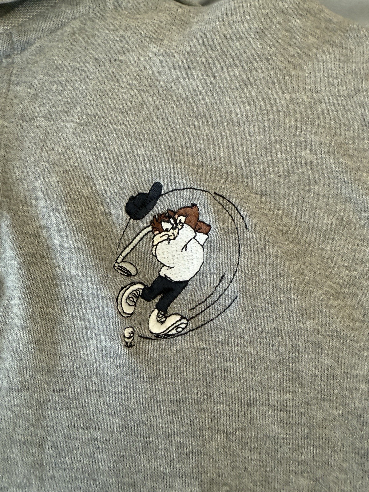 как выглядит Warner Bros. Tasmanian Devil Embroidered Gray Polo Shirt Mens S Cotton фото