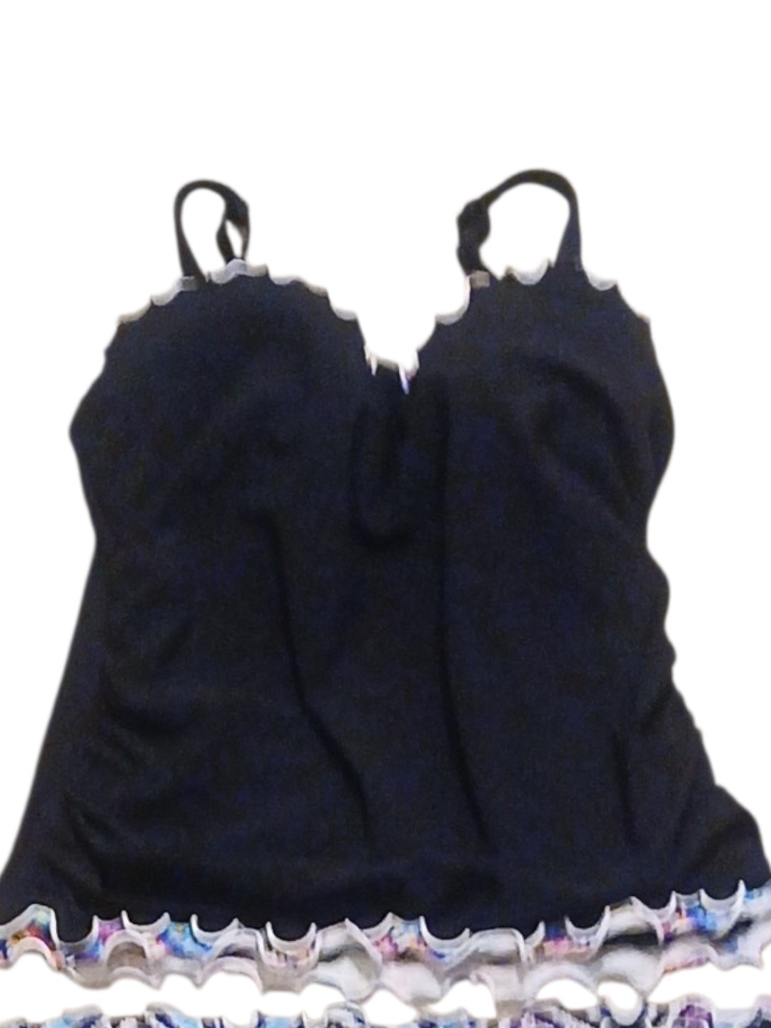 как выглядит Profile By Gottex -NWOT, 2 Piece Swimsuit, Blue W/ Multi Colored Ruffles, D Cup фото