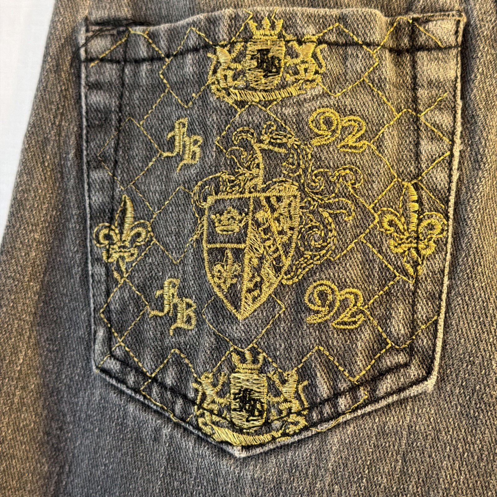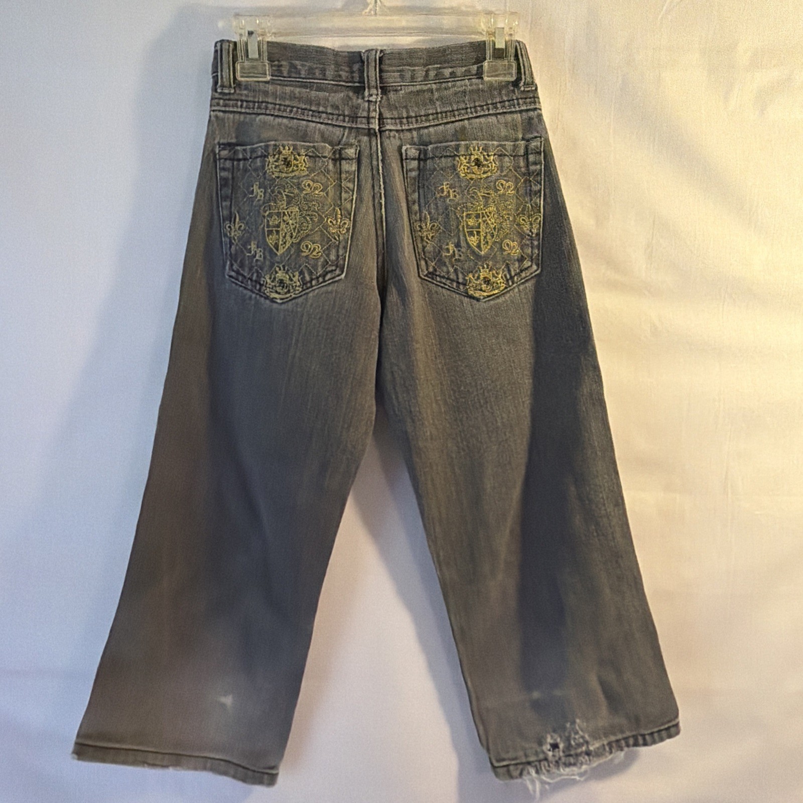 BOYS Vtg FUBU 90s Y2K JEANS FADED BLACK DENIM WIDE BAGGY LEG SIZE 5