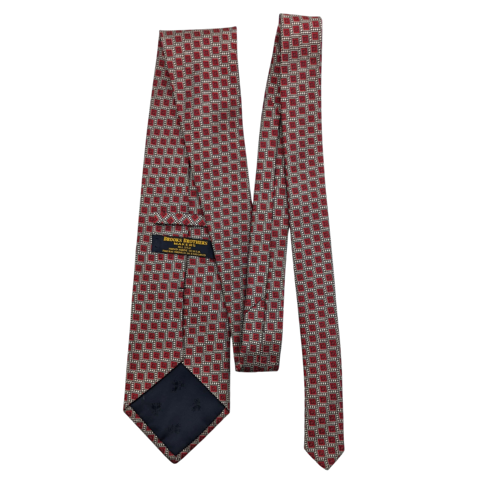 Brooks Brothers Makers All Silk Tie Red White Jacquard Geometric Square Vintage