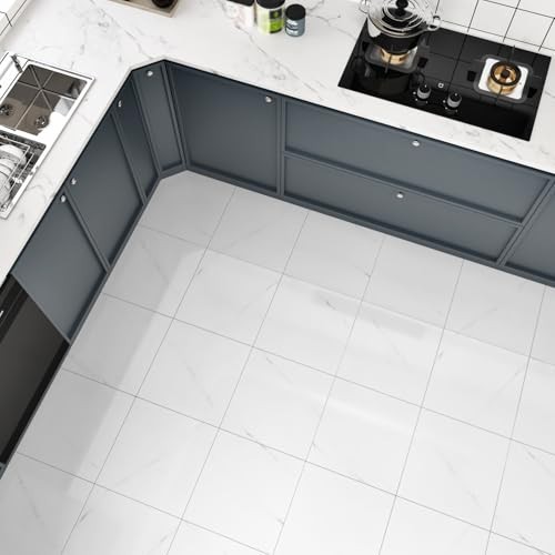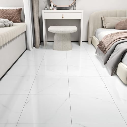 18PCS Glossy Marble White Peel and Stick Floor Tiles - Waterproof Self-Adhesive