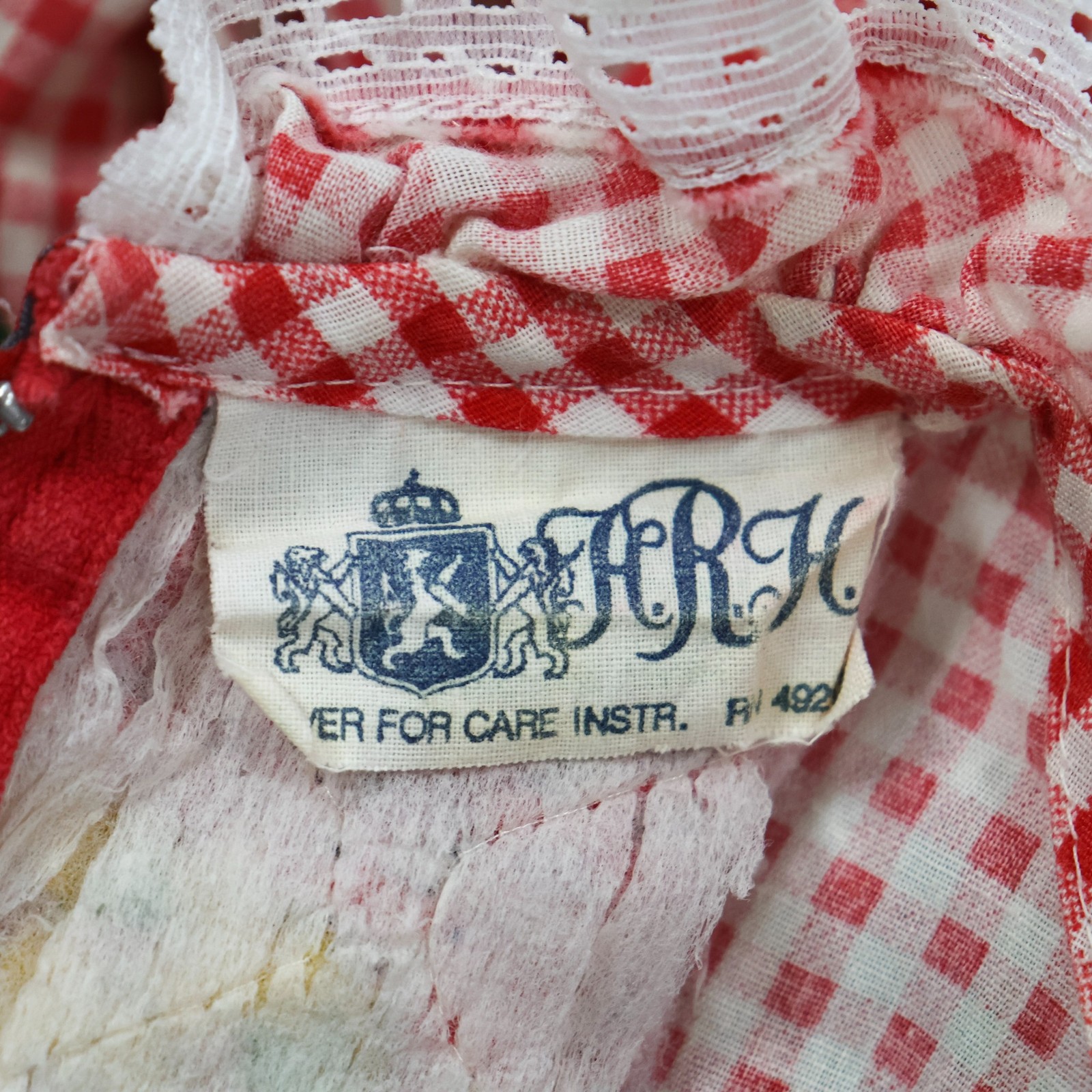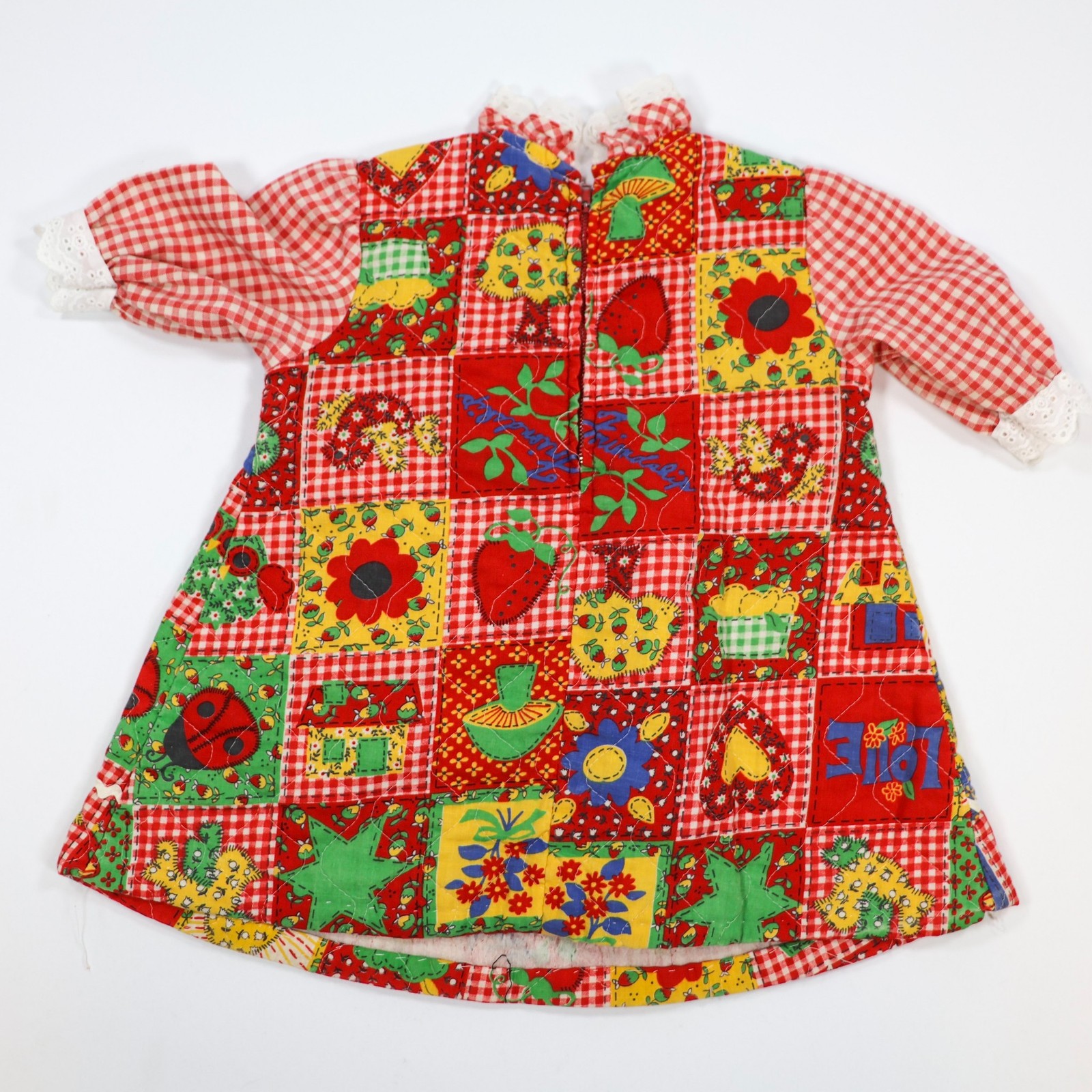 как выглядит Vintage HRH Toddler Baby Dress 1970s Groovy Bright Red Gingham Floral Novelty фото