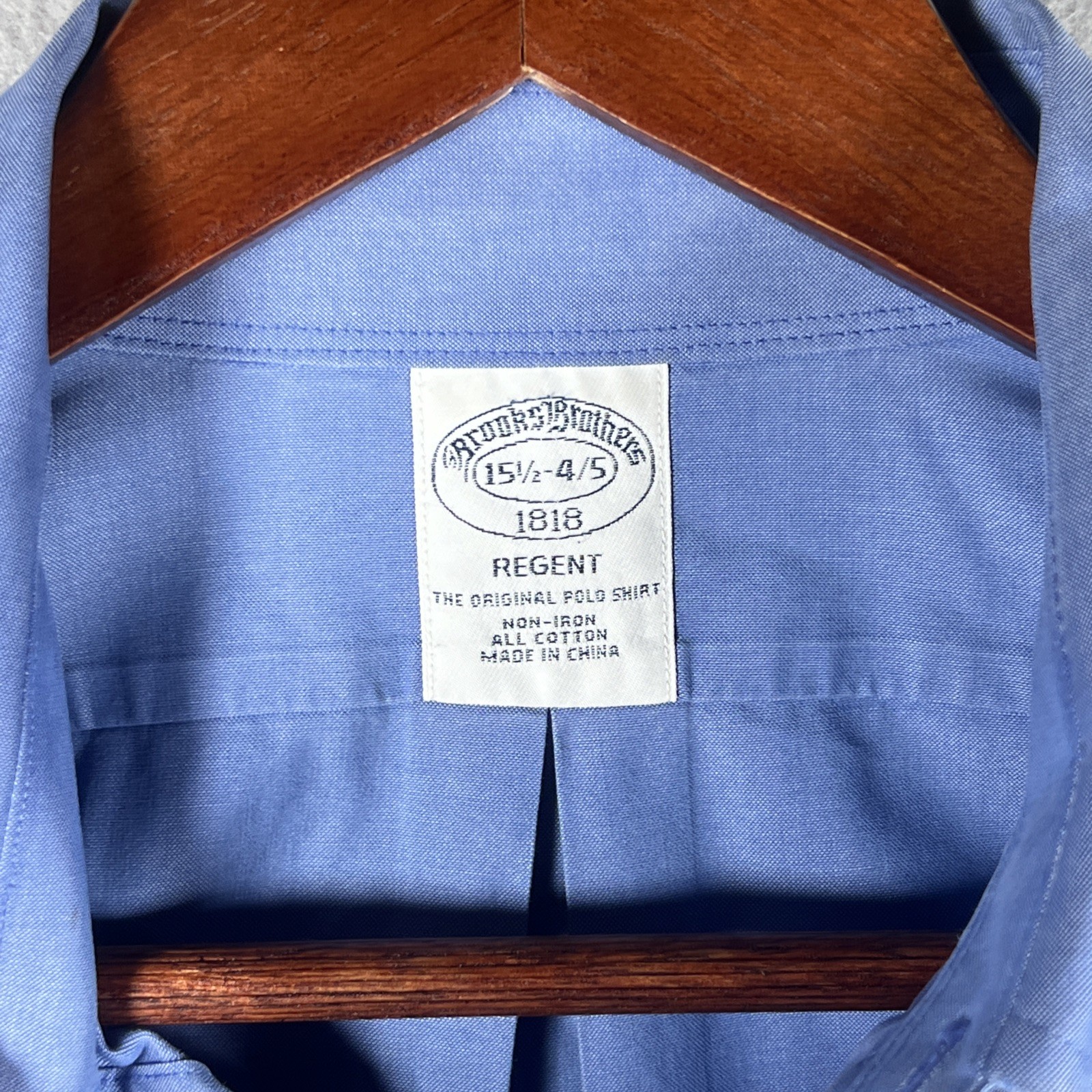 Brooks Brothers Dress Shirt Mens 15 1/2-4/5 Blue Regent Fit Non Iron 100 Cotton