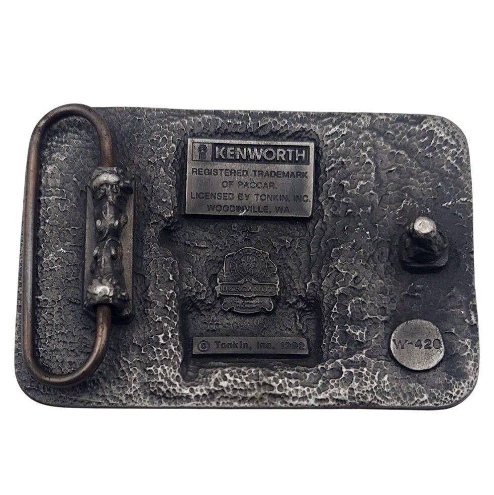 Kenworth Semi-Truck Belt Buckle Silvertone Red Enamel Tonkin Bergamot W-420 1992