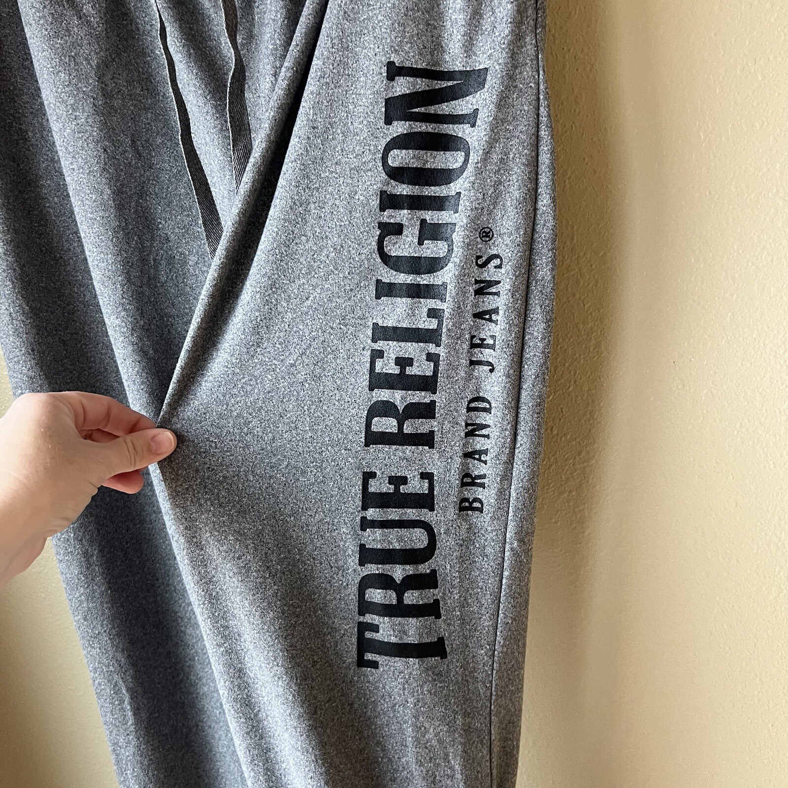 как выглядит True Religion Joggers Loungewear Spellout Logo Sweatpants Men s Size Large Gray фото