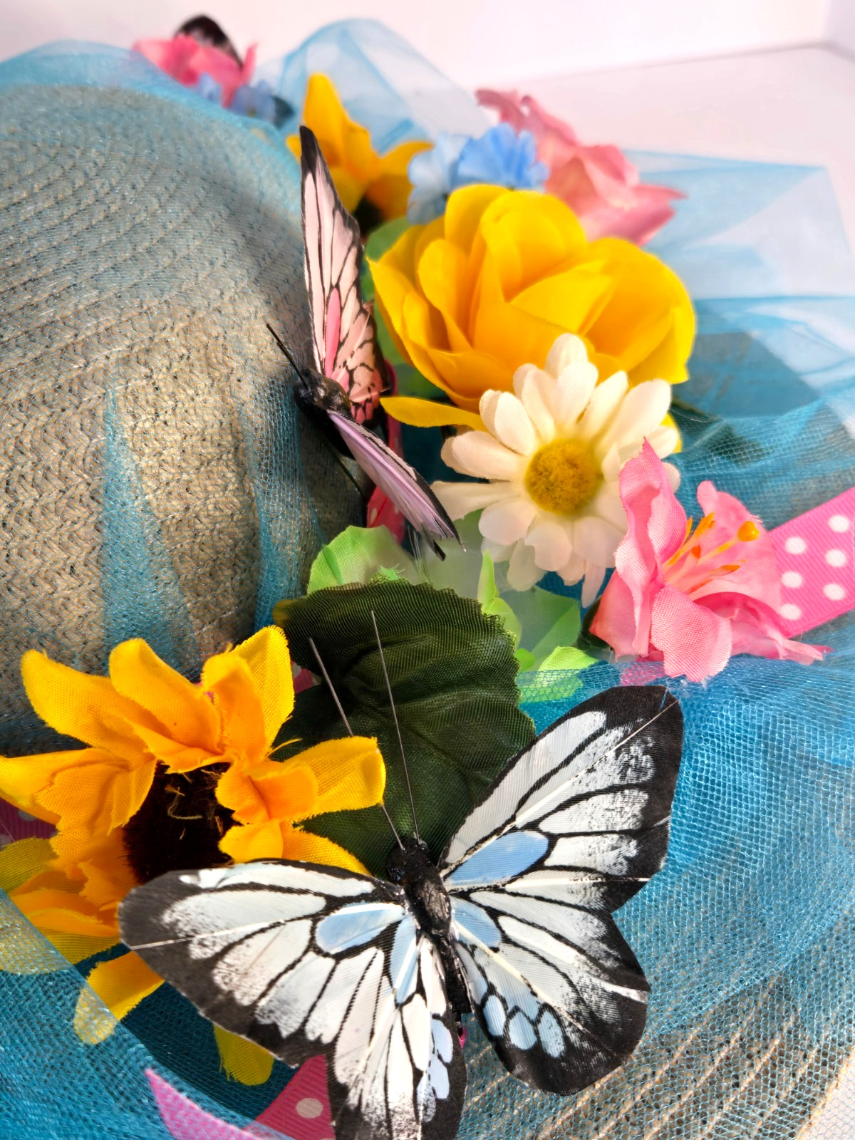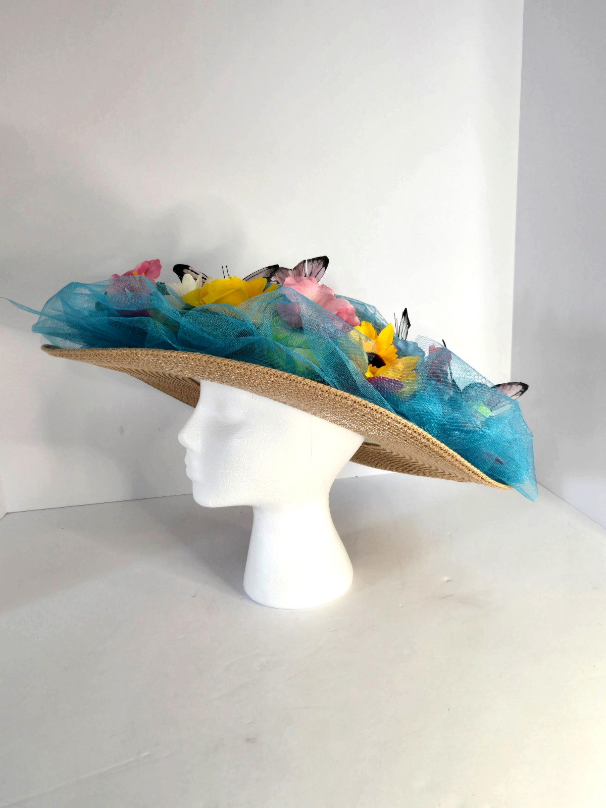 Kentucky Derby Hat Women's Handcrafted Flowers Butterflies Brooch