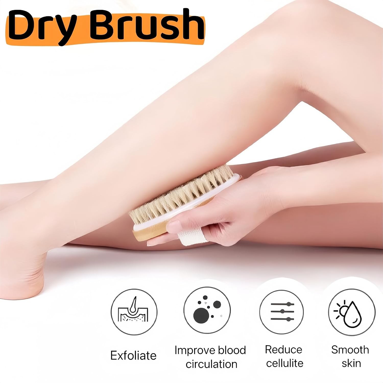 Dry Brush,Natural Bristle Exfoliating Scrubber,Dry Brushing Body Brush for Lymph