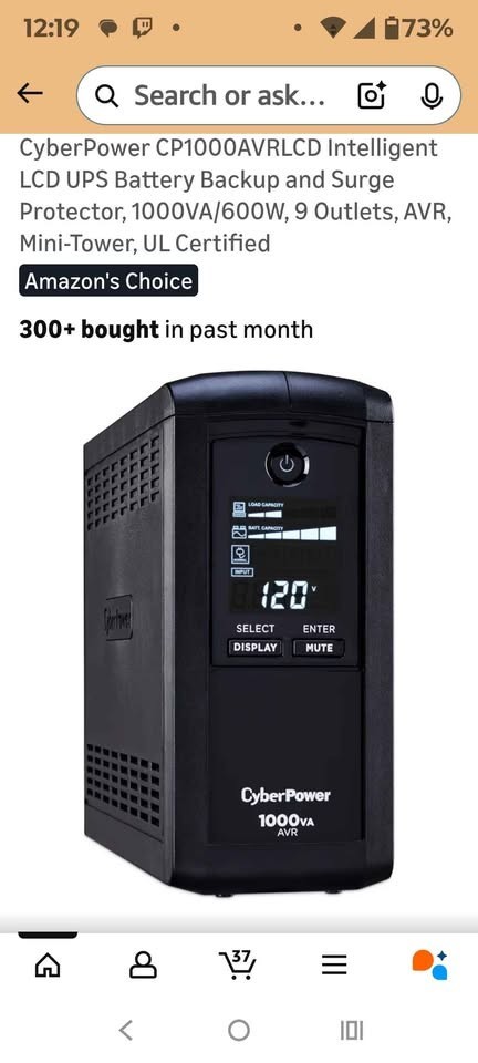 CyberPower CP1000AVRLCD Intelligent LCD UPS Battery Backup and Surge Protector,