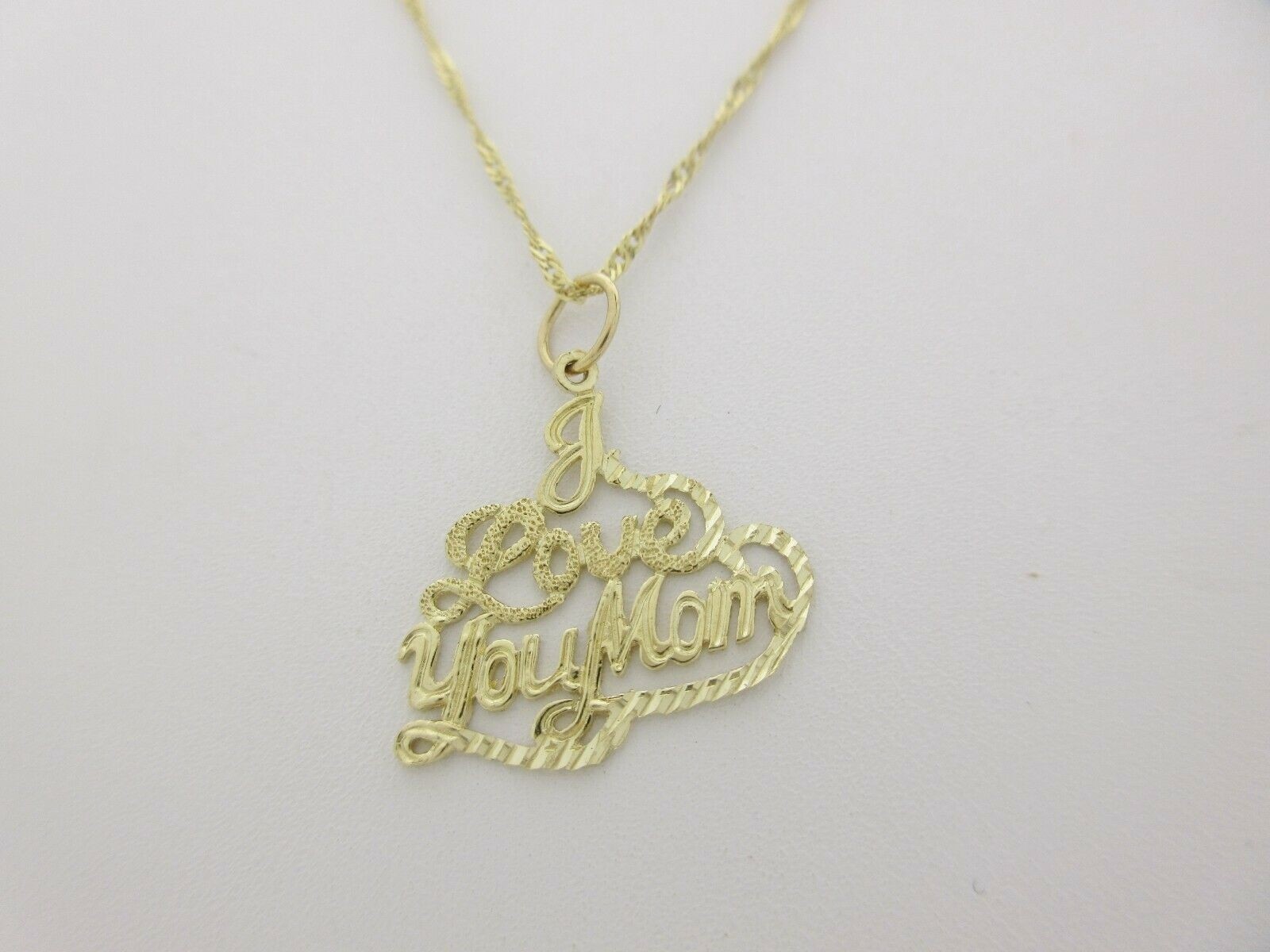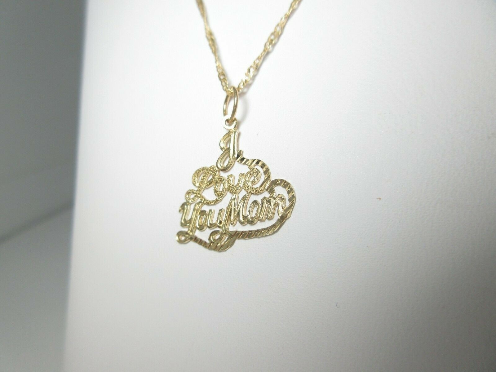 Gold Mothers Necklace I Love You Mom Pendant 14k Solid Gold 24 N418