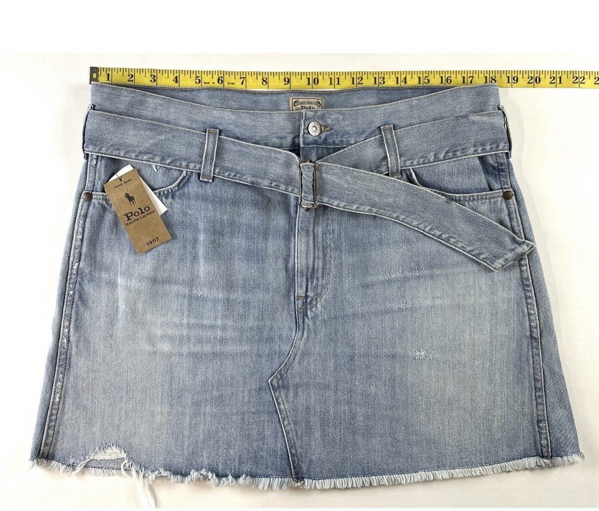как выглядит NWT Polo Ralph Lauren Womens Belted Denim Jean Skirt Distressed Mini Blue Sz.30 фото
