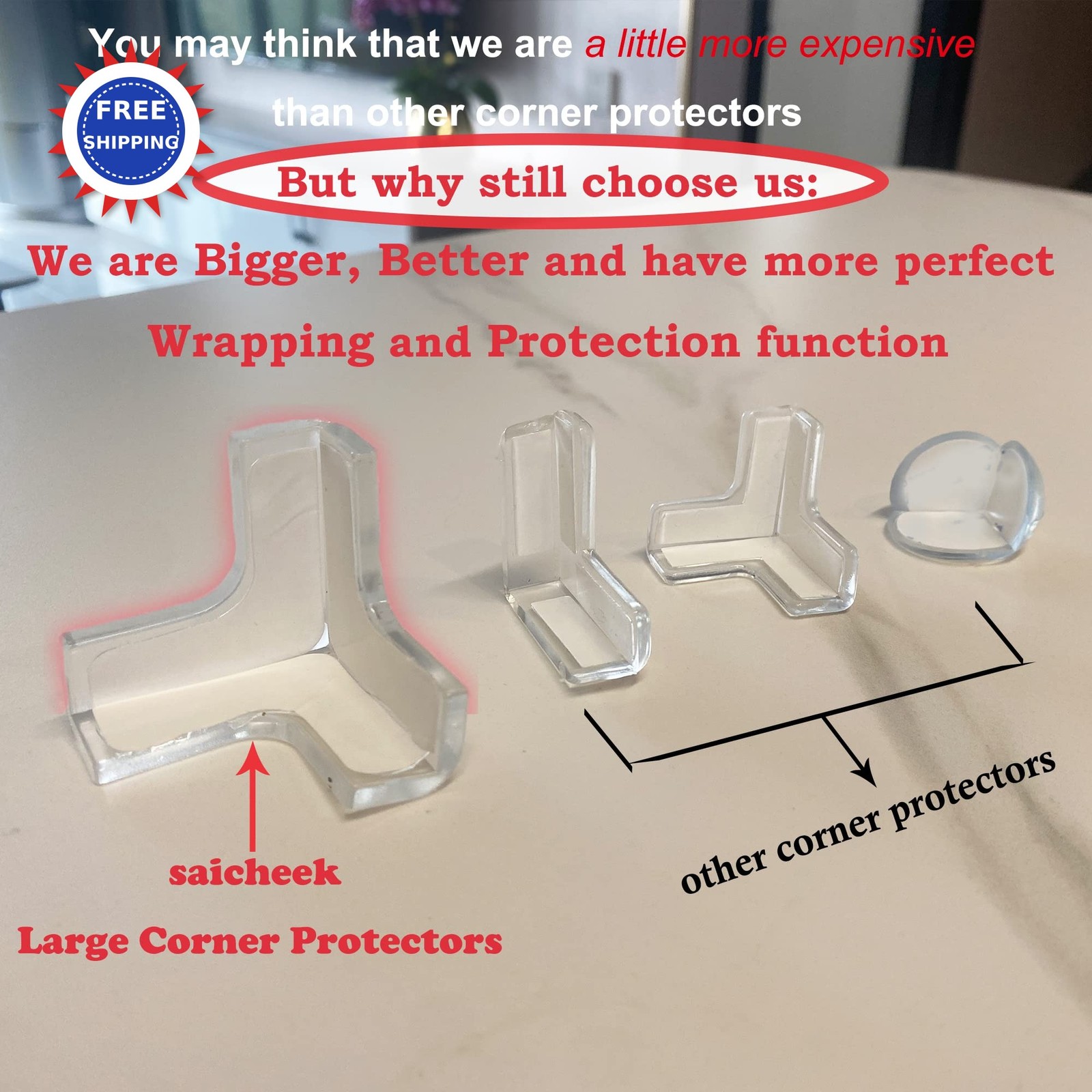 saicheek 4Pcs Large Length 1.7inch Silicone Corner Protector Baby Proofing
