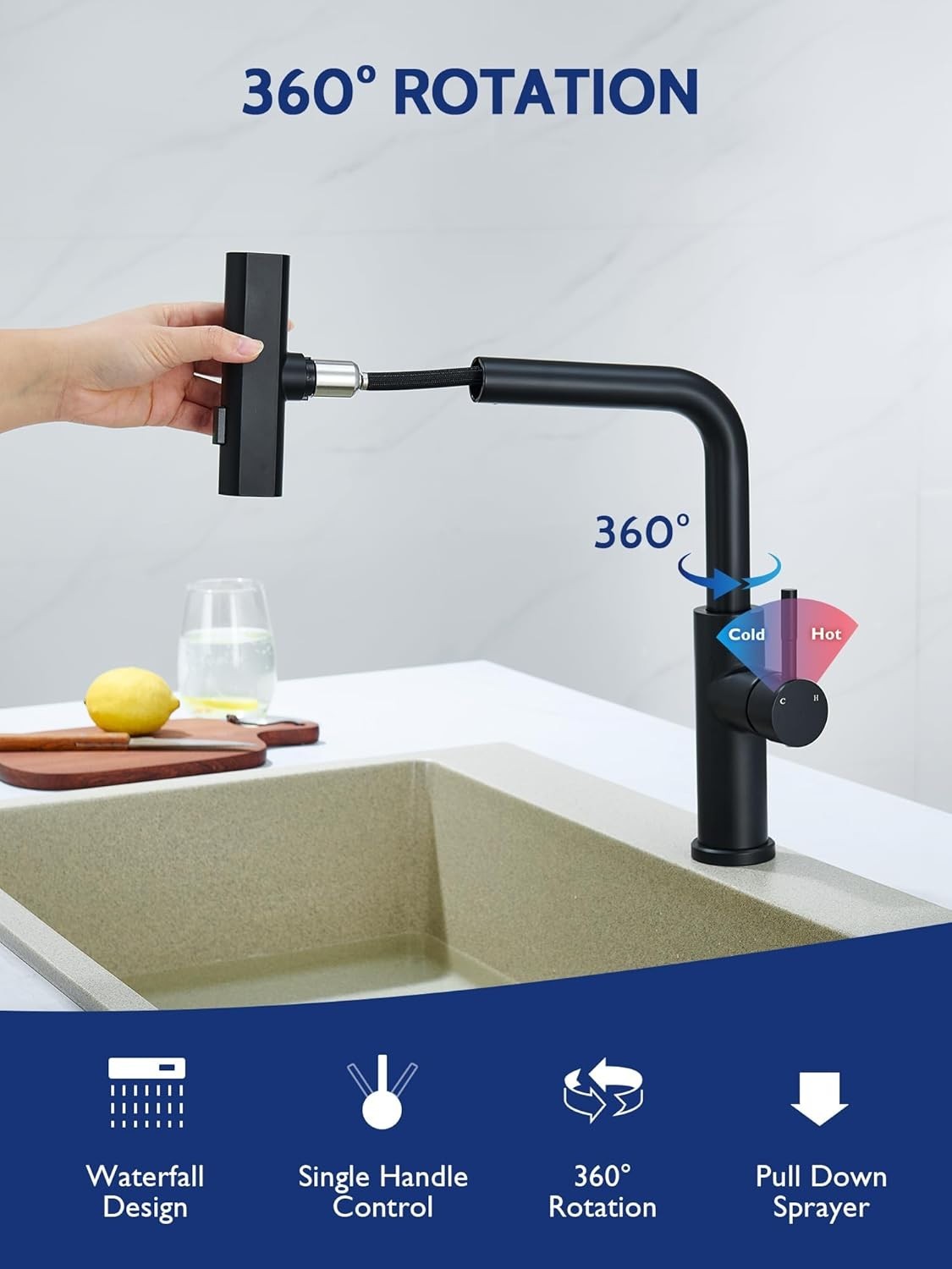 Kitchen Faucet with Pull Down Sprayer, Waterfall Single Hole Single Handle Si...
