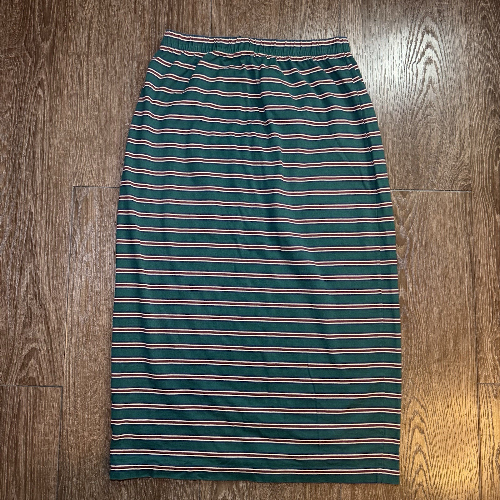 Vintage Ralph Lauren Size Medium Striped Midi Skirt Womens Green 100 Cotton