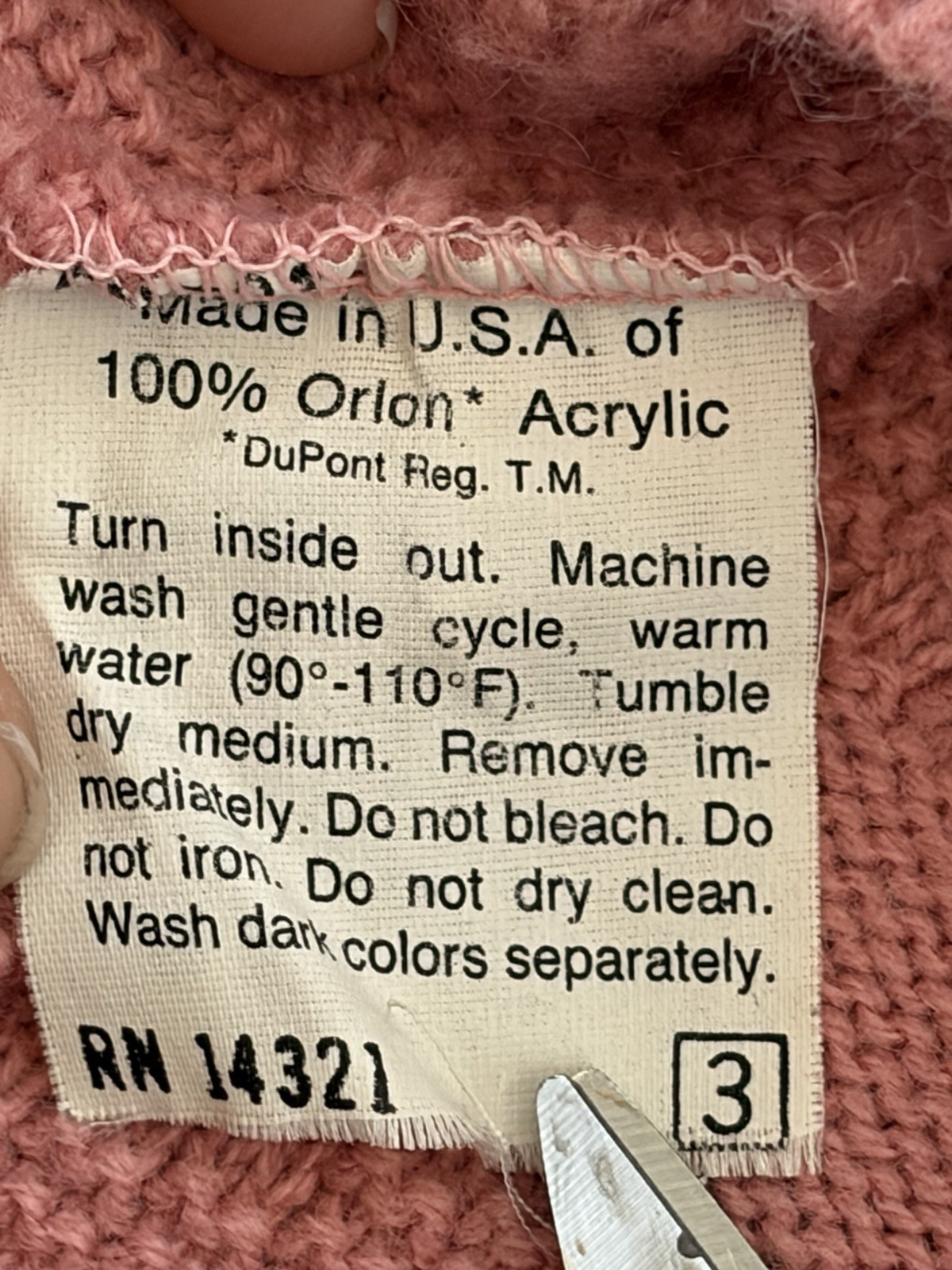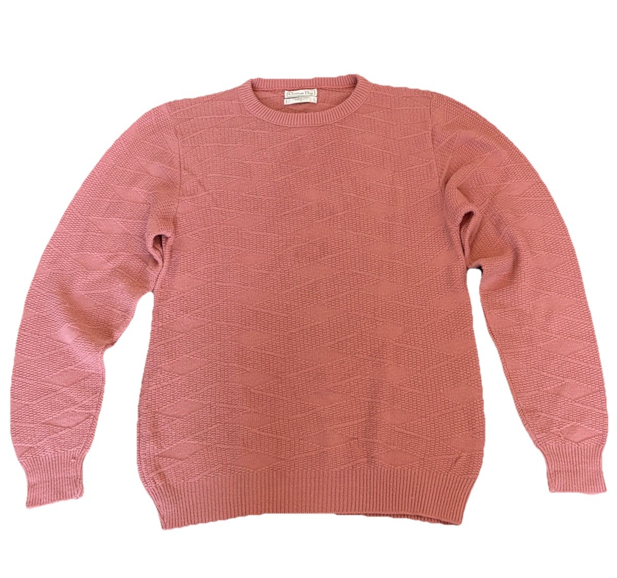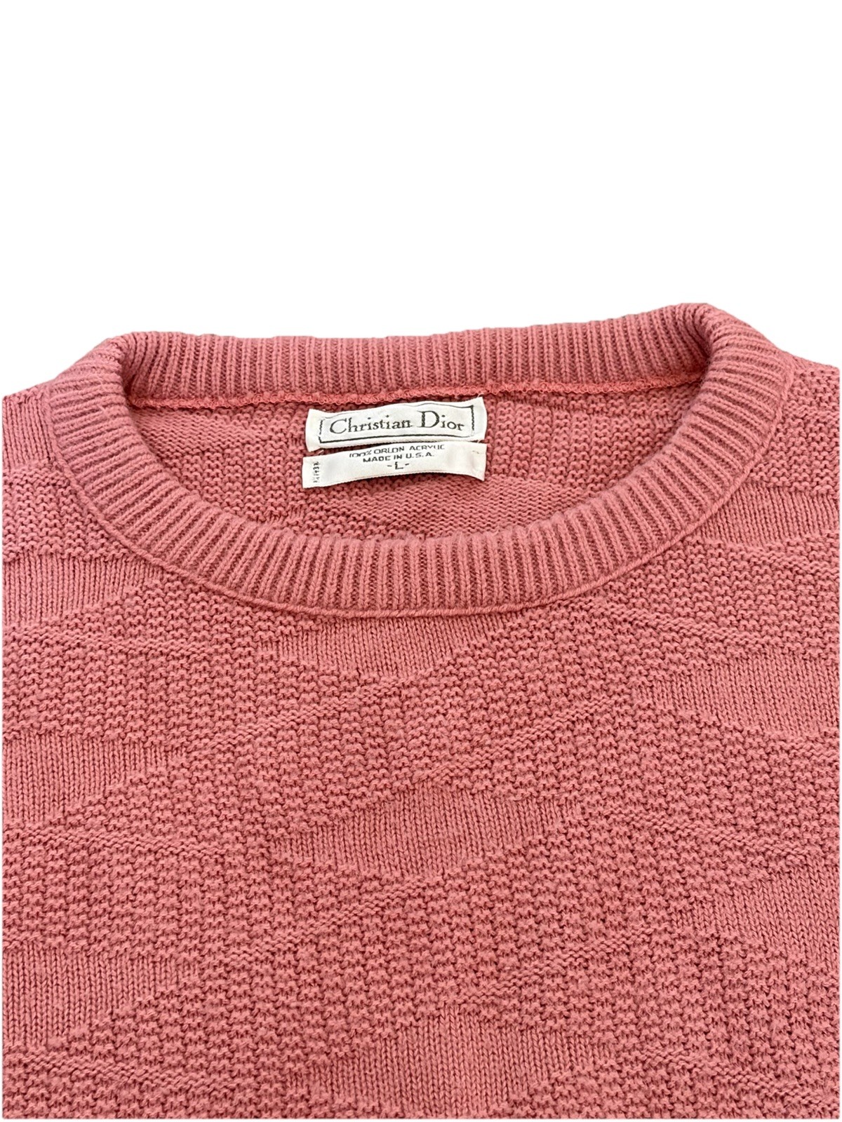 Vintage Christian Dior Orlon Acrylic Pink Sweater USA Made Large Diamond Knit