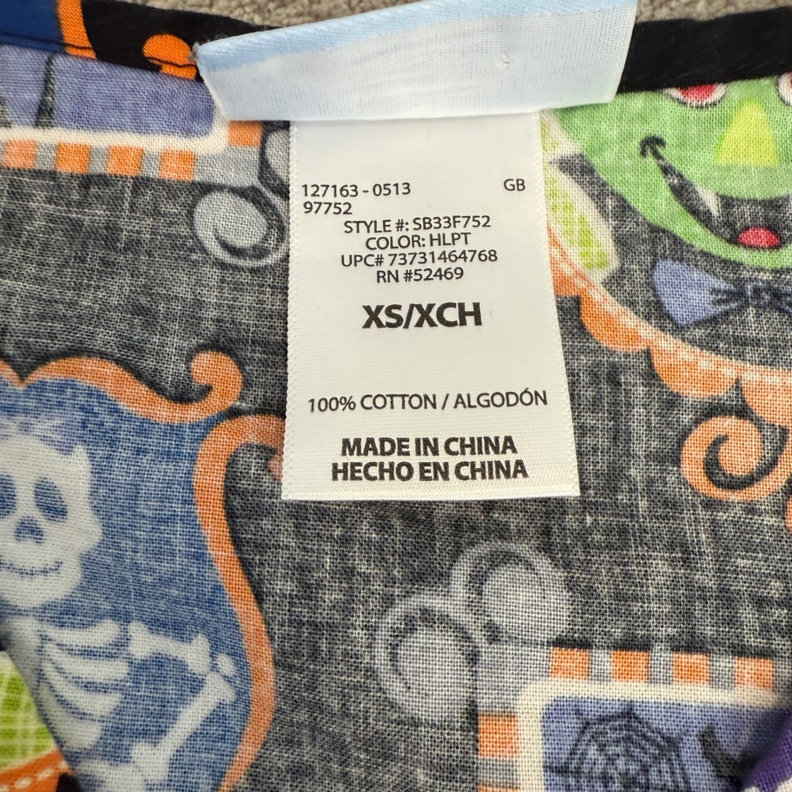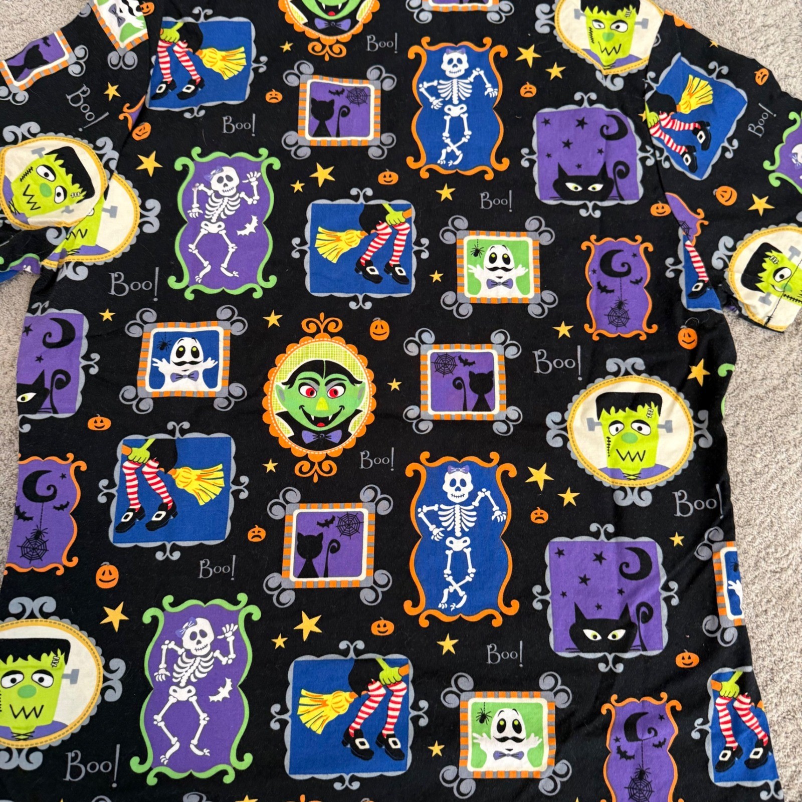 SB Scrubs Halloween Monster Print V-Neck Scrub Top Womens XS Black SB33F752 HLPT