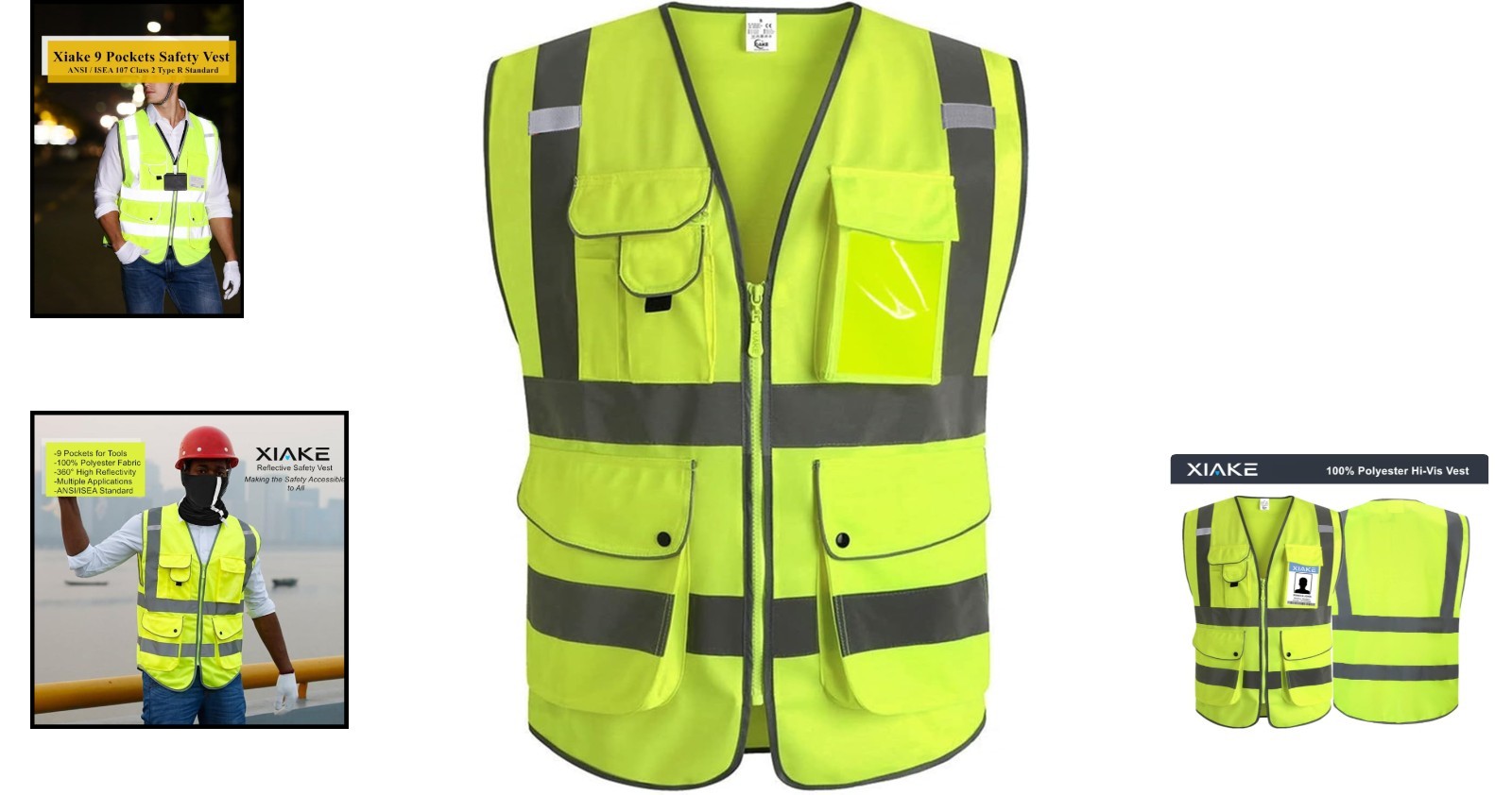 ANSI Class 2 High Visibility Safety Vest with 9 Pockets for Complete Protection