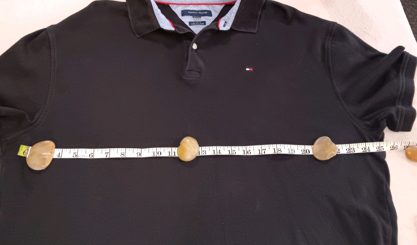 Tommy Hilfiger Black Polo Shirt Mens XL Flag Logo 100 Cotton Short Sleeve