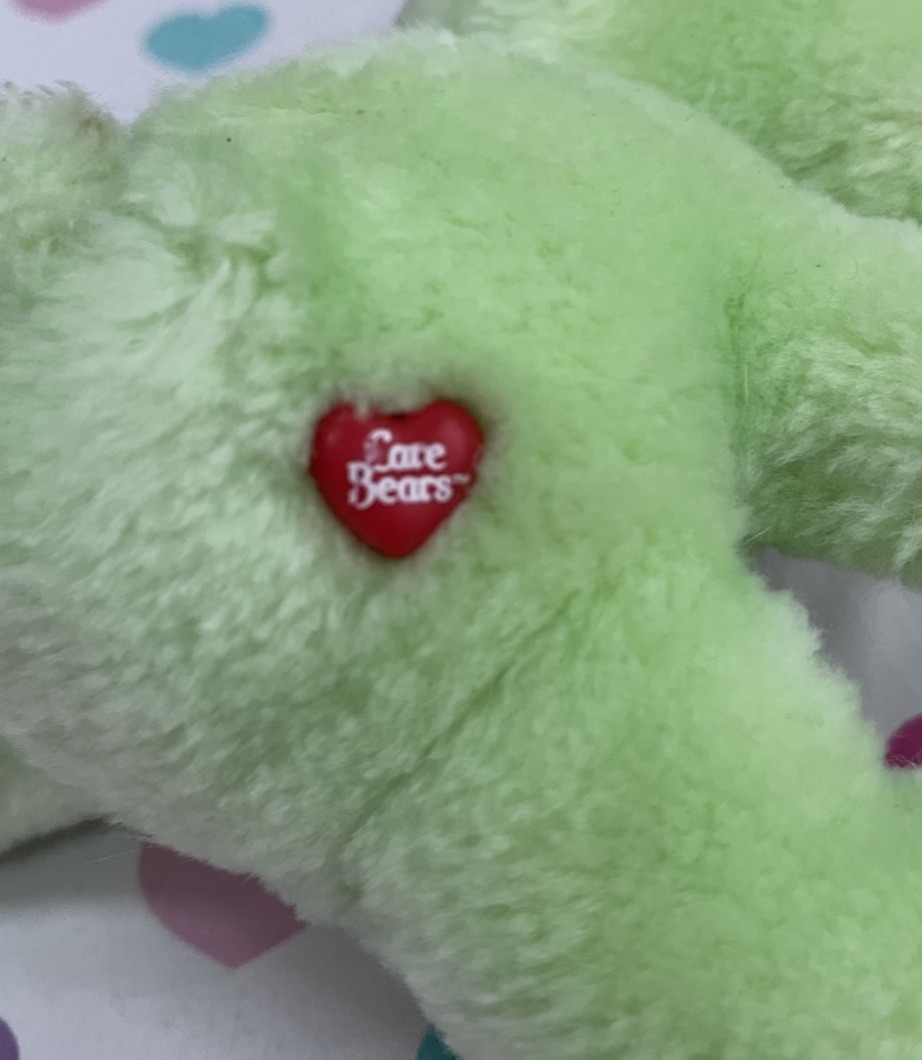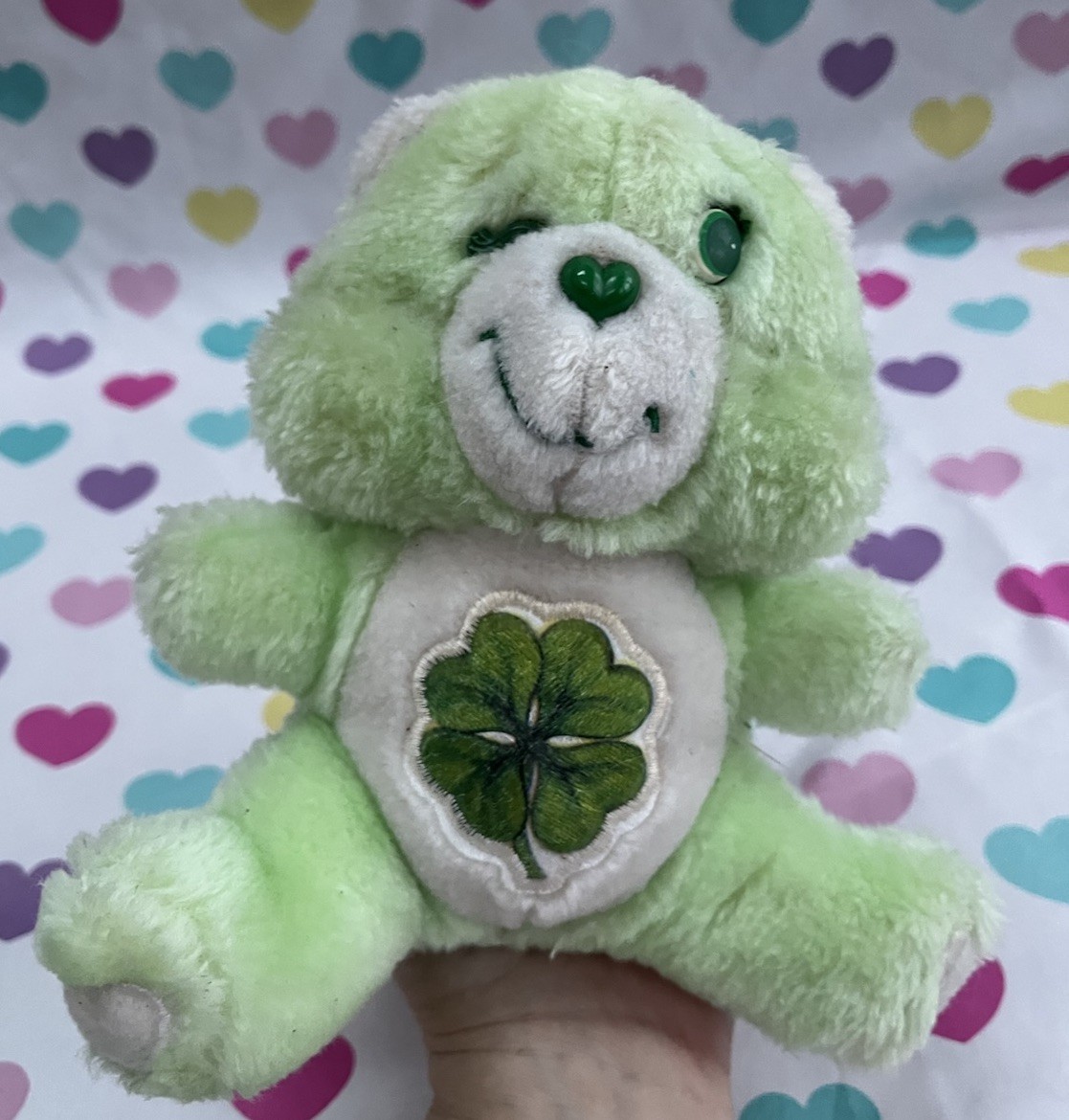 • Vintage Care Bears Good Luck Bear Plush Green Lucky Shamrock 4 Leaf Clover belly