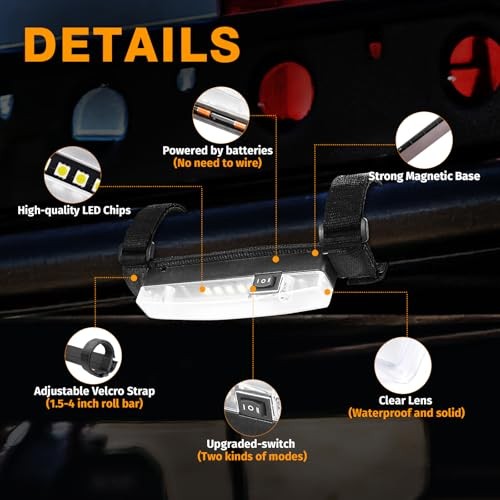 UTV Dome Light, Roll Bar Mount for UTV Interior Lights Battery Powered White