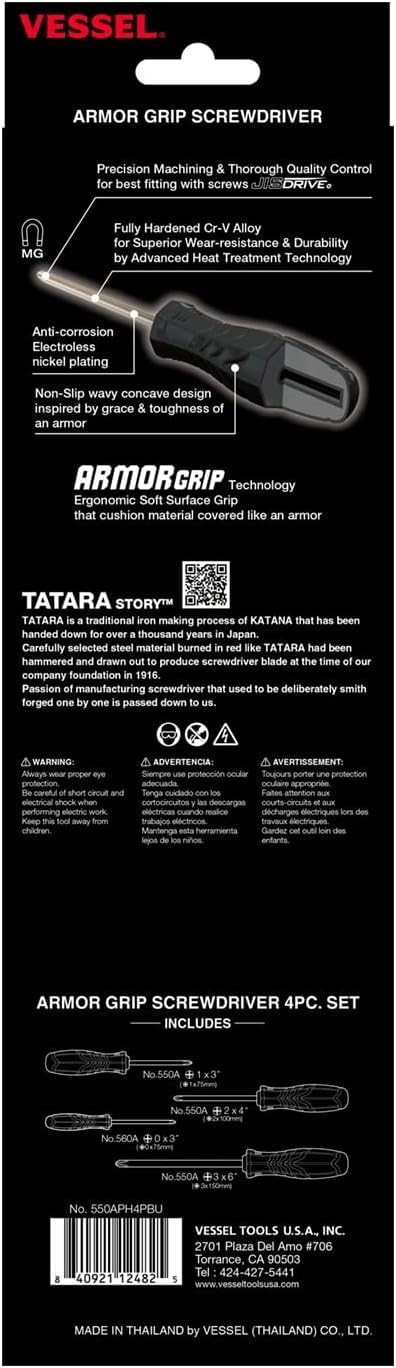 VESSEL - ARMOR GRIP Screwdriver Cross Point 4PC. Set JISDRIVE Black