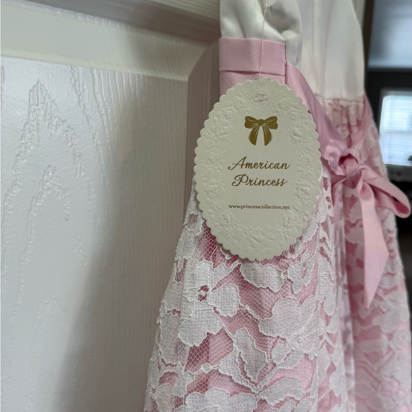 NWT American Princess Pink and White Floral Lace Dress Size 6