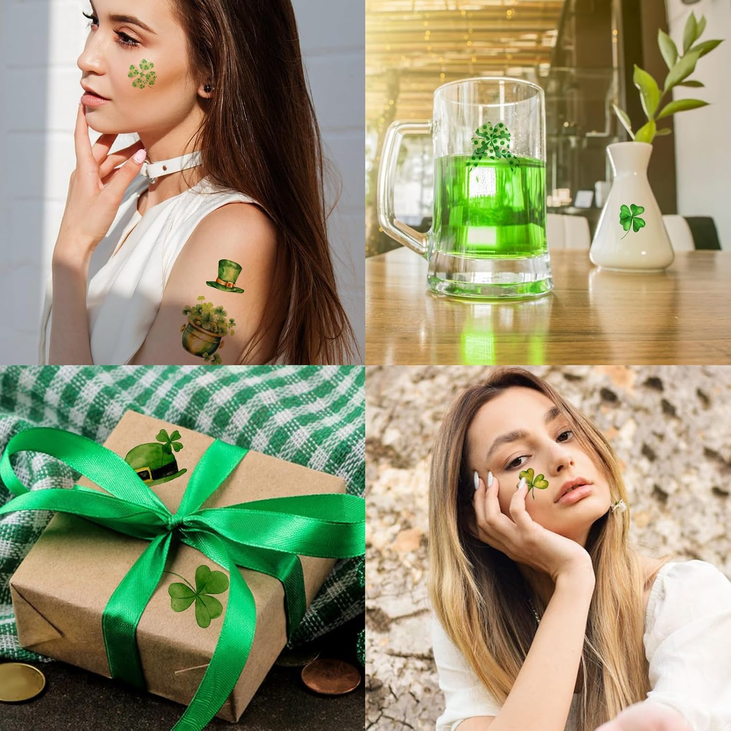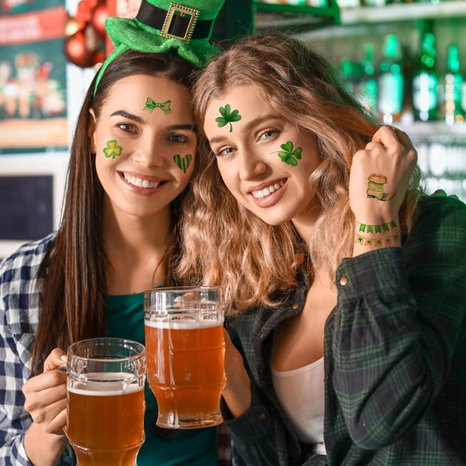 как выглядит 76 PCS St. Patricks Day Temporary Tattoos - Shamrock Hat Stickers for All Ages фото