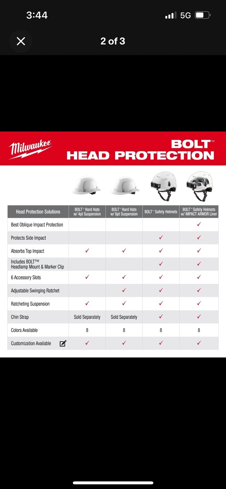 Milwaukee BOLT Black Front Brim Vented Hard Hat W/4Pt Ratcheting 48-73-1210