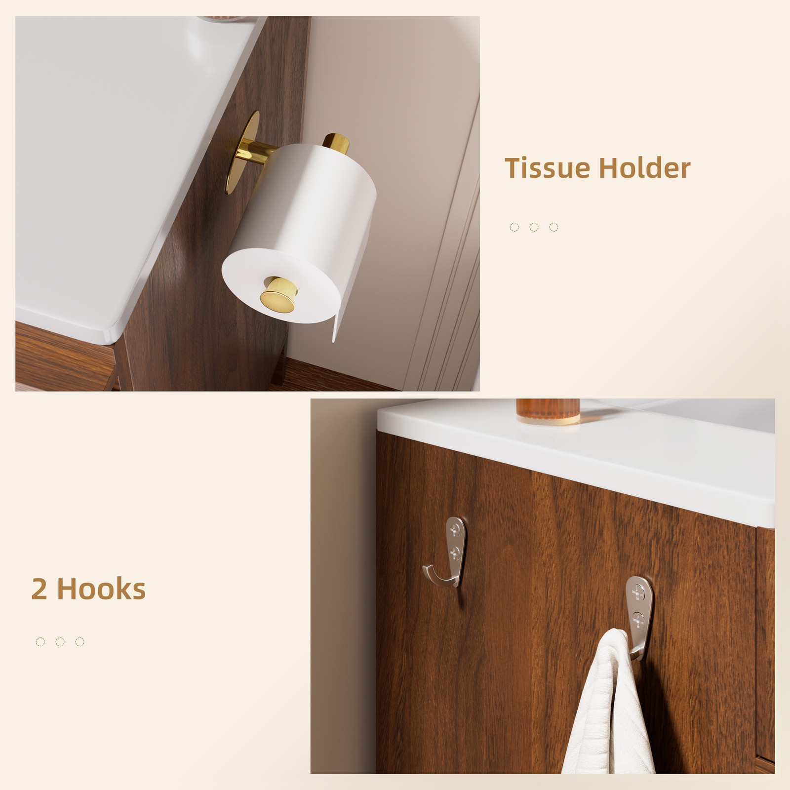 36 Bathroom Vanity w/Sink Storage Cabinet Towel Hooks Walnut White Freestanding