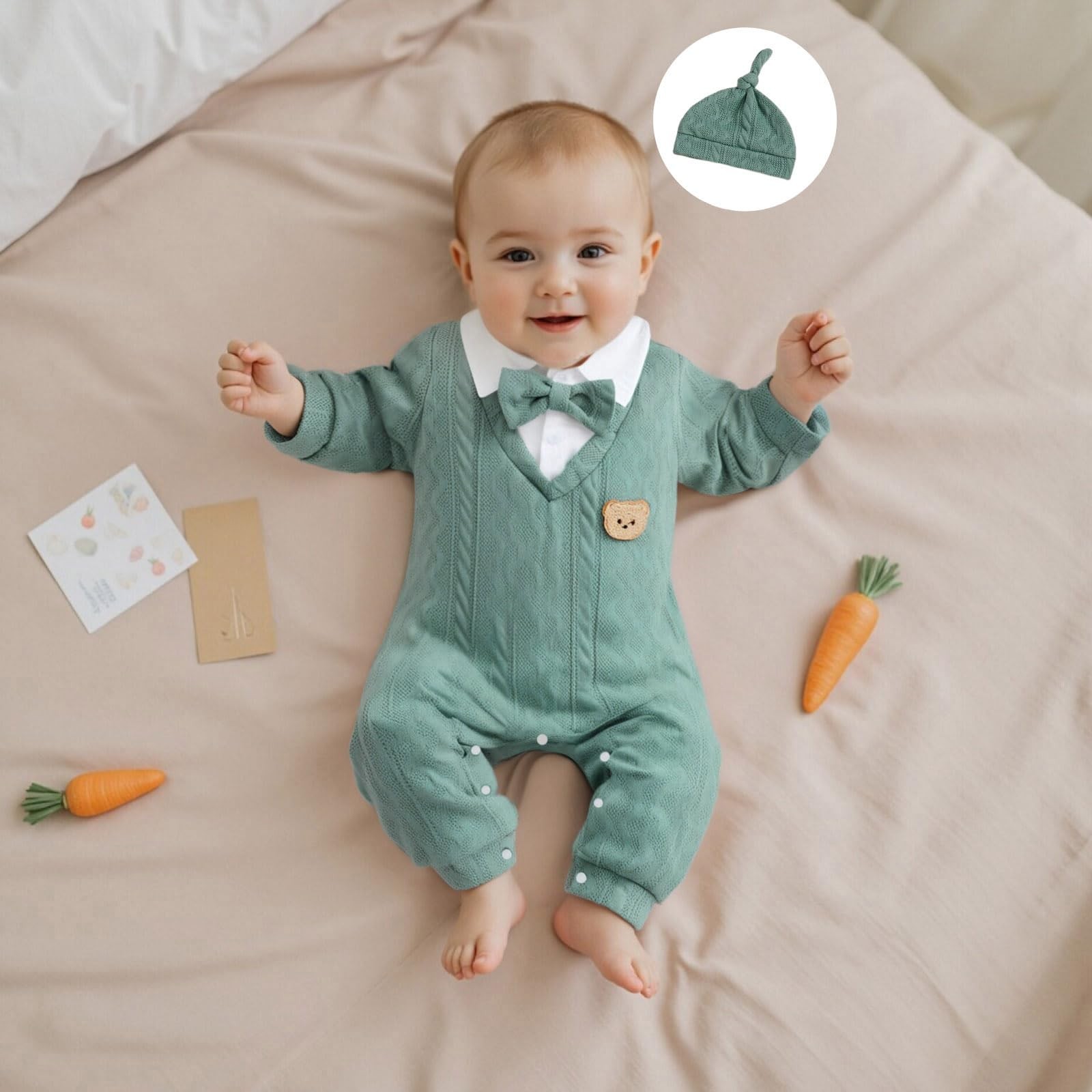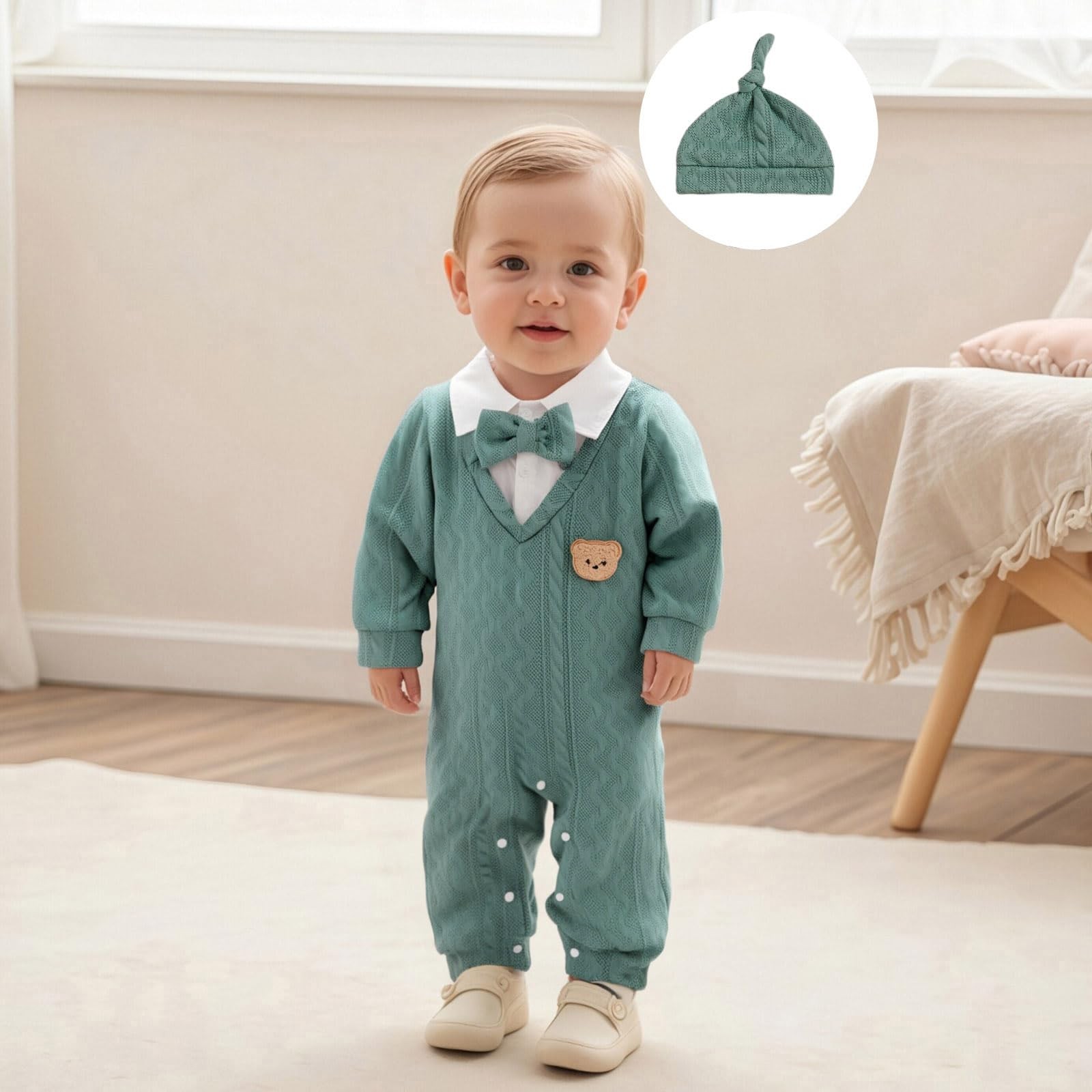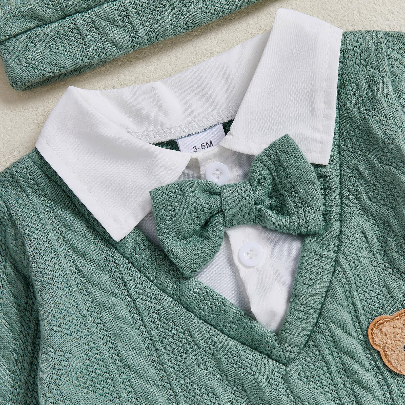 Newborn Infant Baby Boy Outfits Suit Bowtie Bear Embroidery Dress Romper Jump...