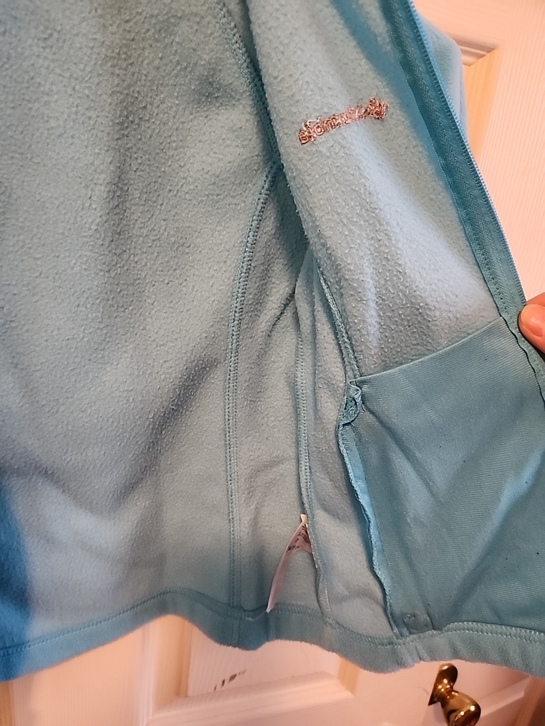как выглядит Childrens Columbia Fleece Jacket, Aqua/teal, Sz S 7-8 фото