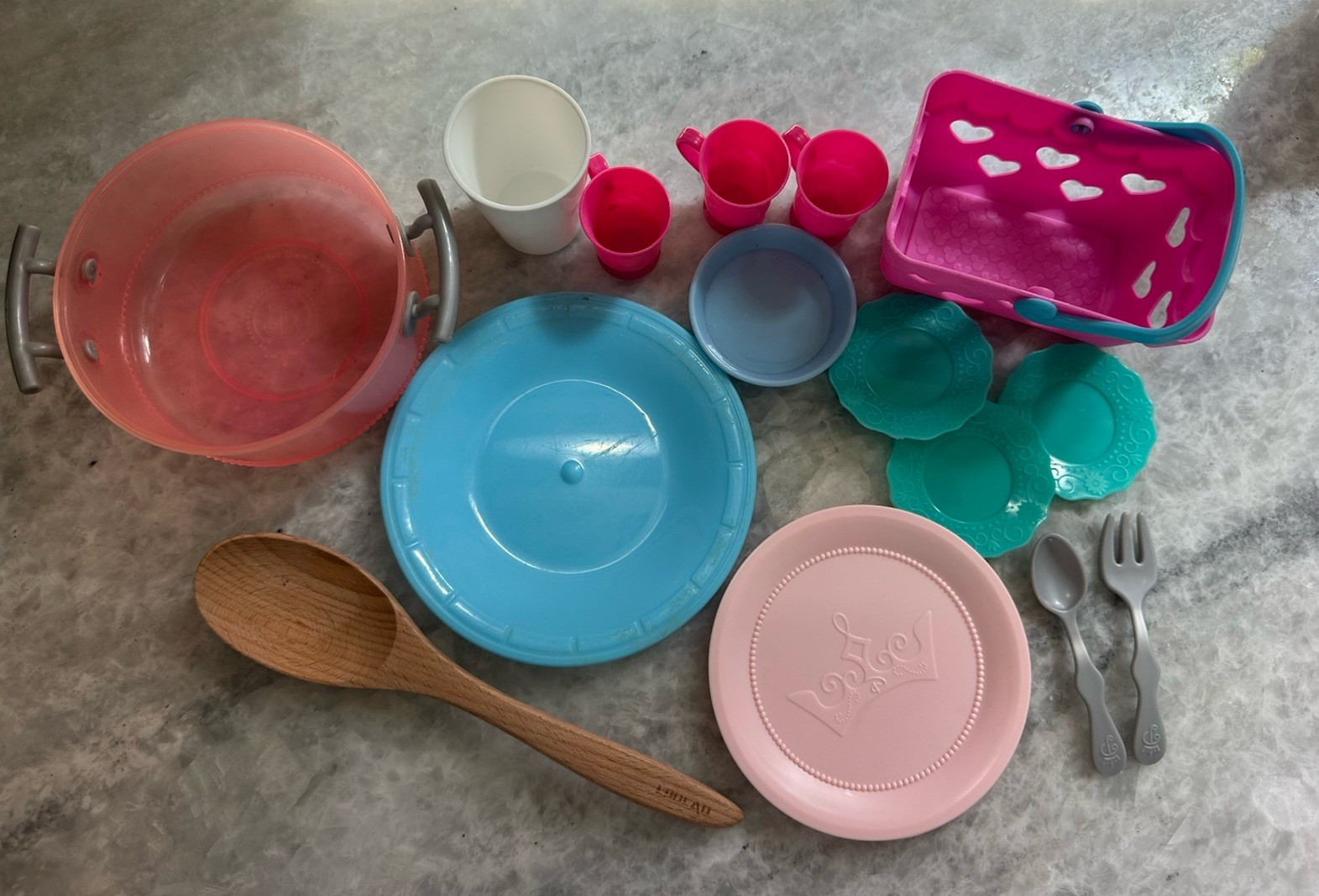 Lot of Kids Pretend Play Toy Food Dishes Utensils Pot Plates for Kitchen