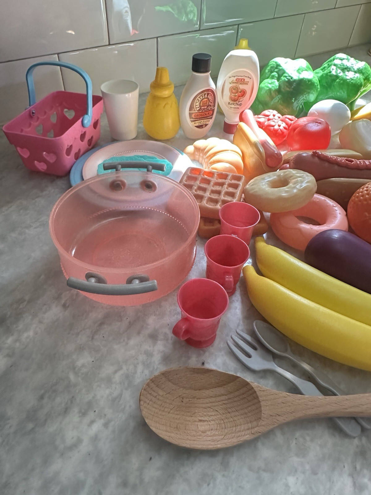 как выглядит Lot of Kids Pretend Play Toy Food Dishes Utensils Pot Plates for Kitchen фото