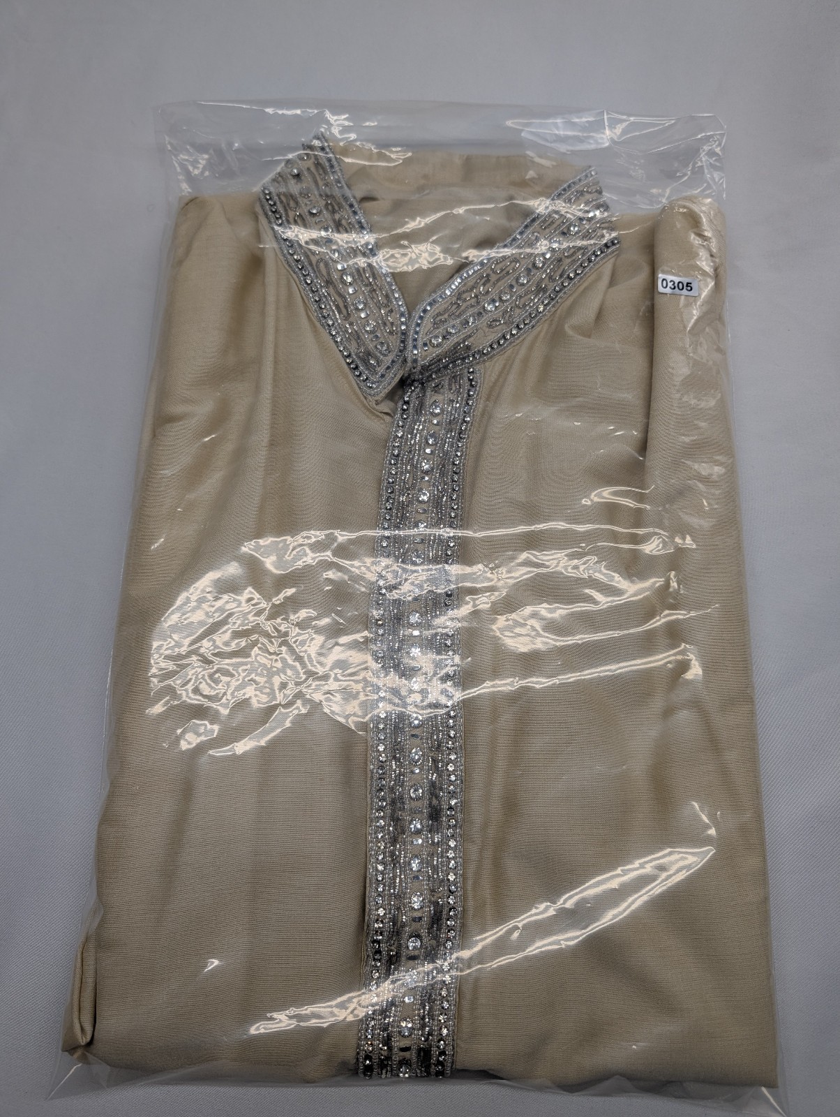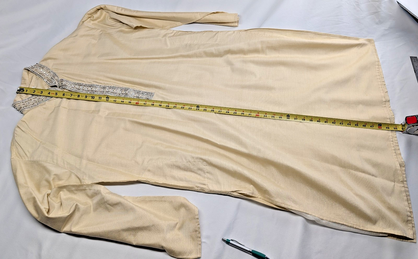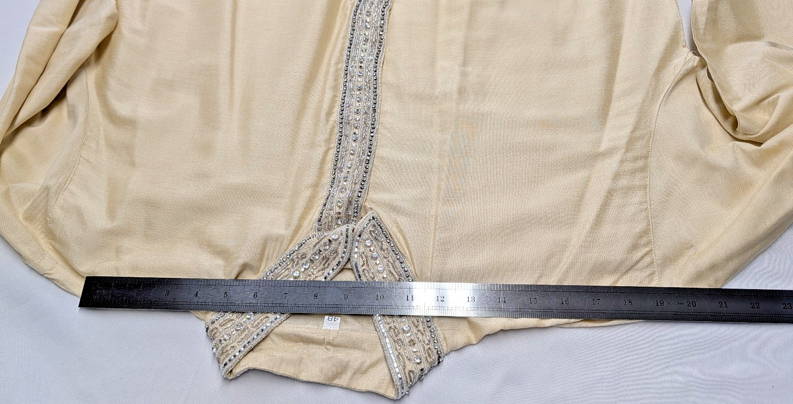 как выглядит Kurta Tunic Mens Size 48, Gold Champagne Beaded Rhinestone Formal Silk фото