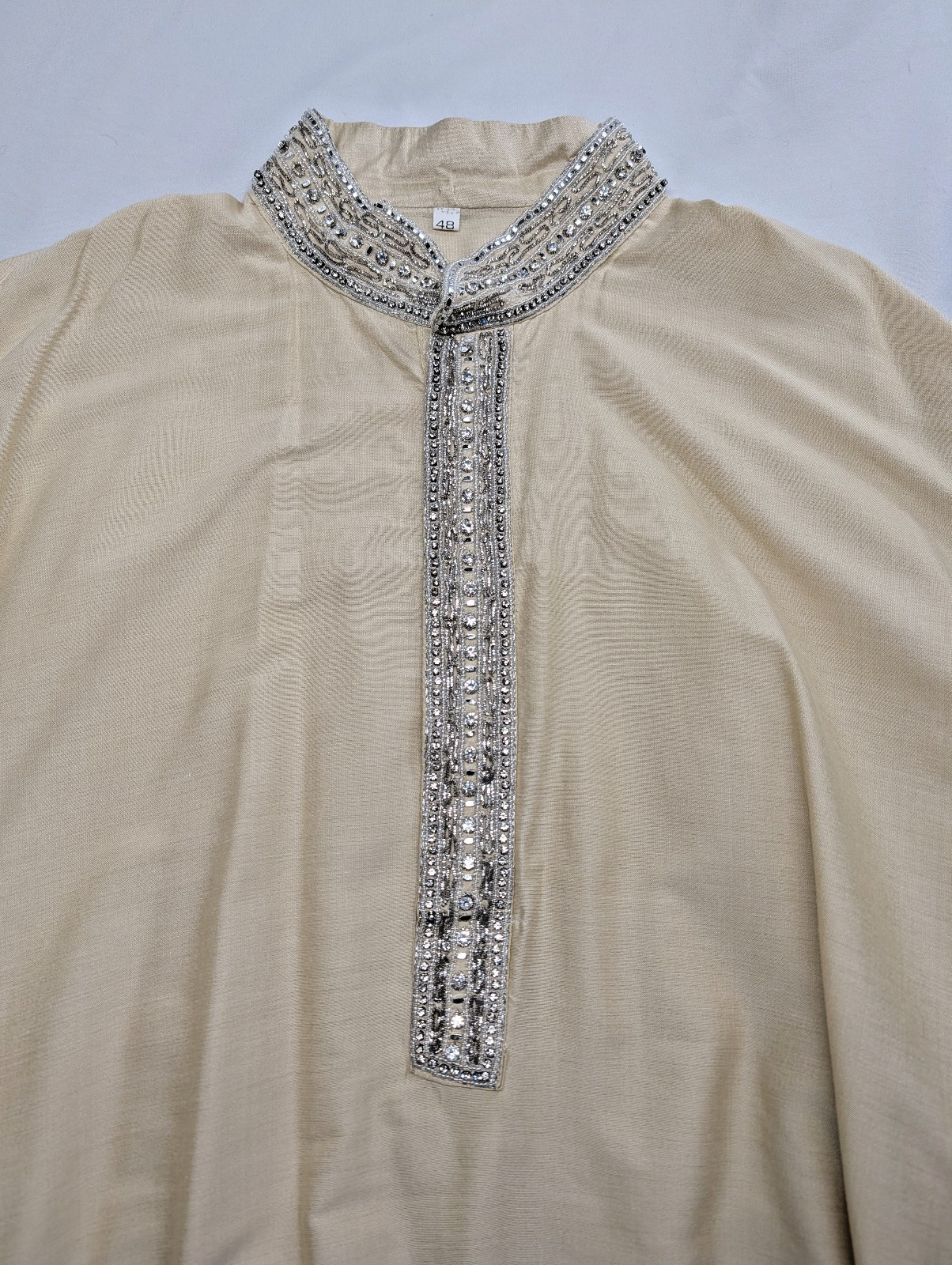 Kurta Tunic Mens Size 48, Gold Champagne Beaded Rhinestone Formal Silk