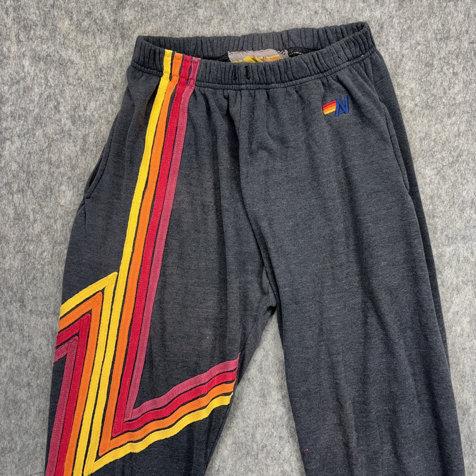 Aviator Nation Sweatpants Unisex Medium Gray 4 Stripe Logo Rainbow