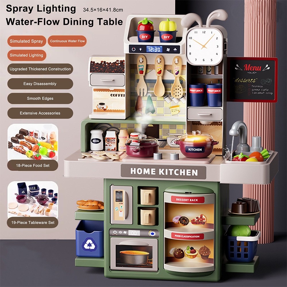 Kids Kitchen Play Set-Interactive Mist w/Water Circulation for Ages 3 Green