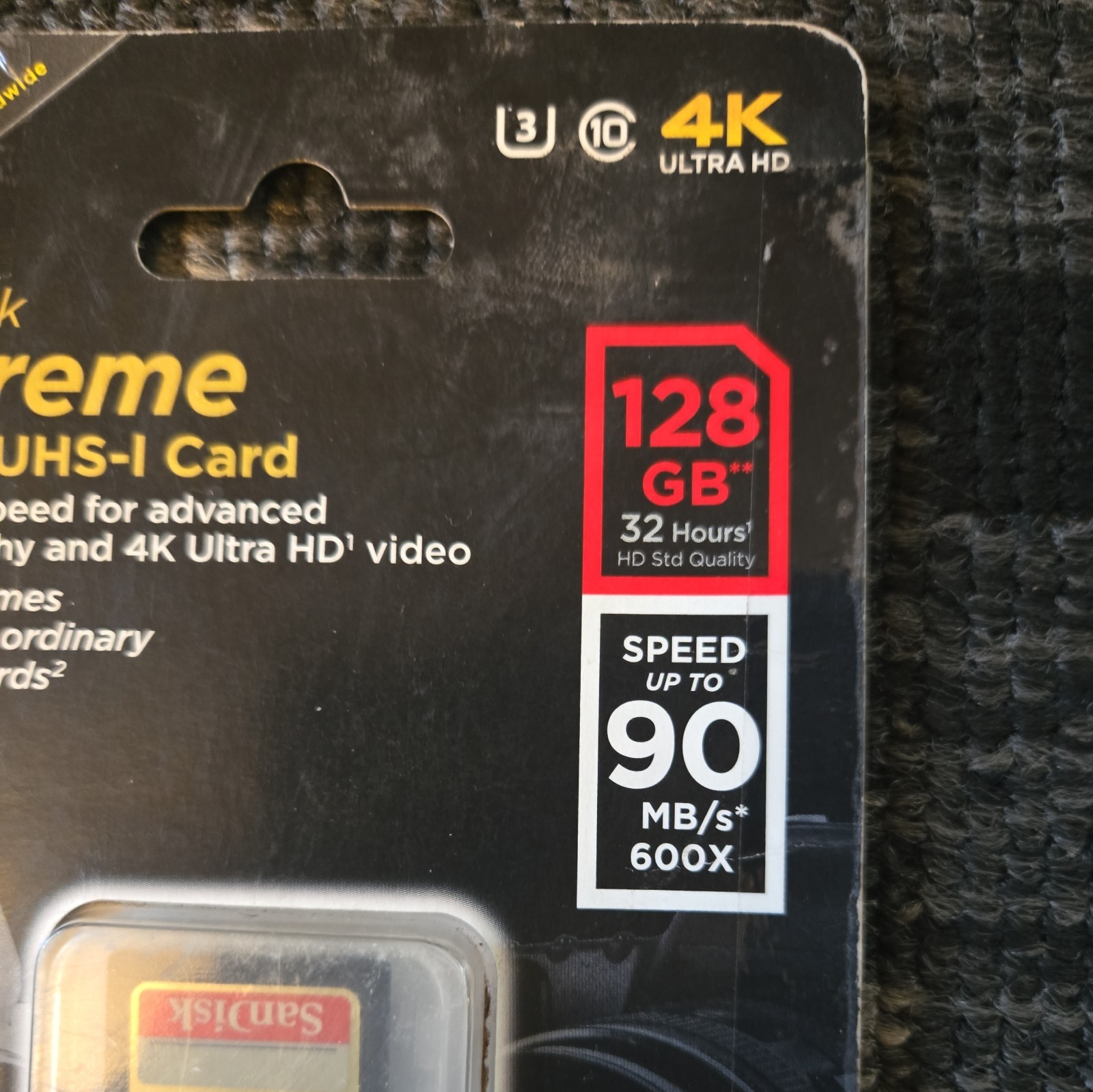 SanDisk Extreme 128GB SDXC UHS-I Memory Card 4K UHD U3 V30 Class 10